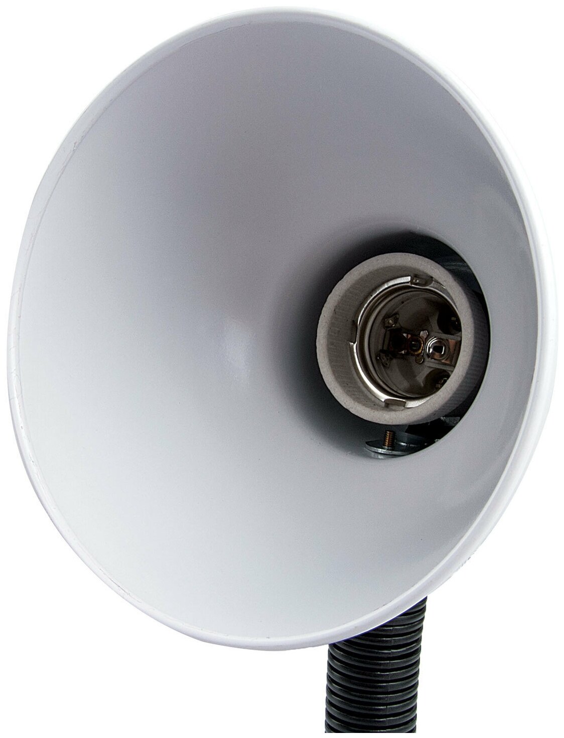 Для светильника высотой 30 см подходит любая технология бытовых ламп (накаливания, люминисцентная, светодиодная) с цоколем Е27, благодаря чему можно самостоятельно выбрать яркость и оттенок света. При использовании лампы накаливания, максимальная мощность не должна превышать 40 Вт. Корпус из пластика представлен в предельно простом черно-белом дизайне, благодаря которому он гармонично впишется в офисный или домашний интерьер. Лампа крепиться с помощью прищепки. Лампочка в комплект не входит.