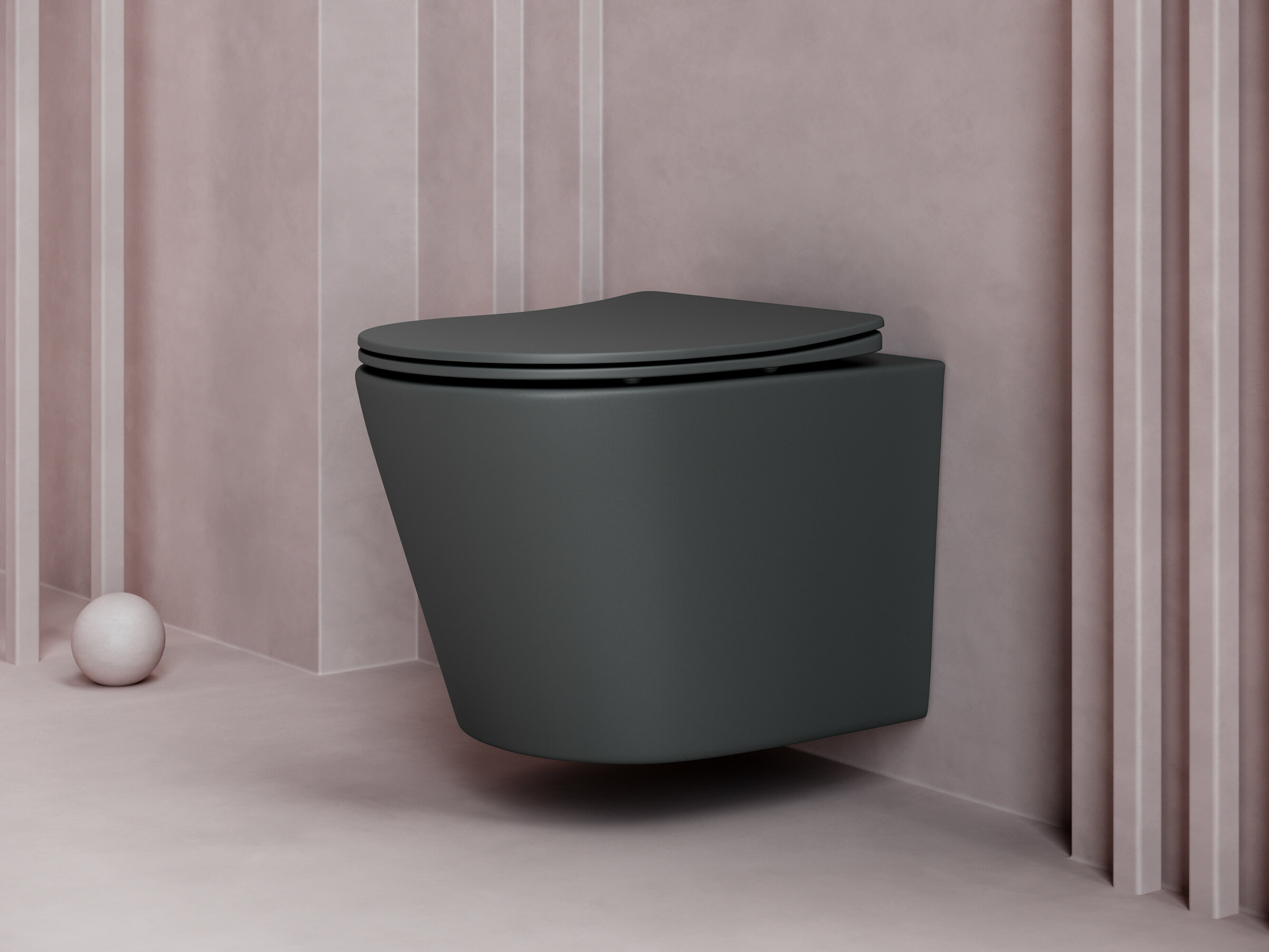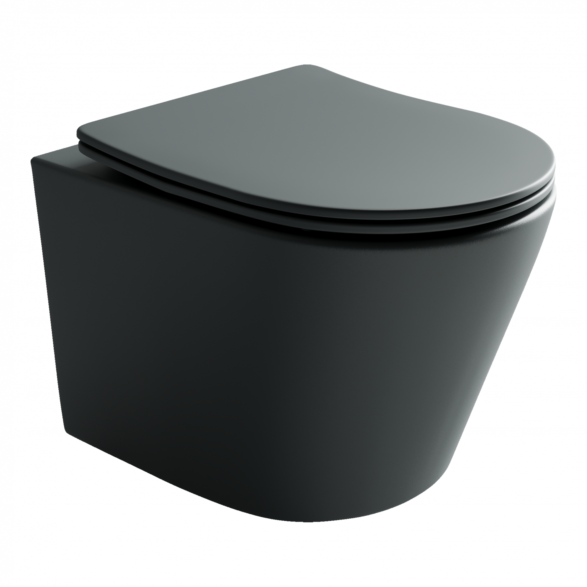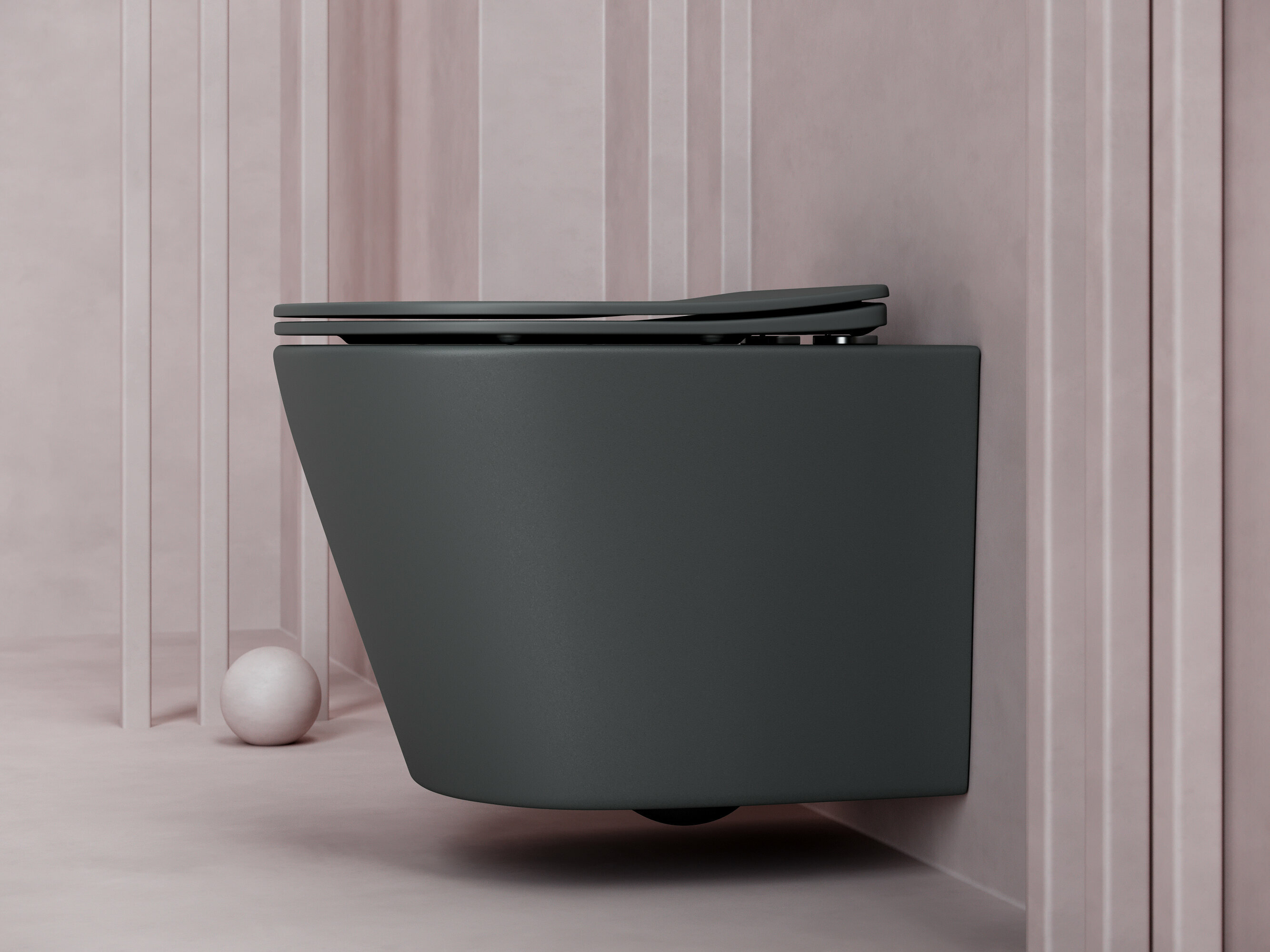 Подвесной унитаз Ceramicanova Balearica CN6000MDH темный антрацит матовый, глубокий смыв, с крепежом для полностью скрытого монтажа, ультра тонким с сидением и крышкой с функцией плавного закрытия, дюропласт