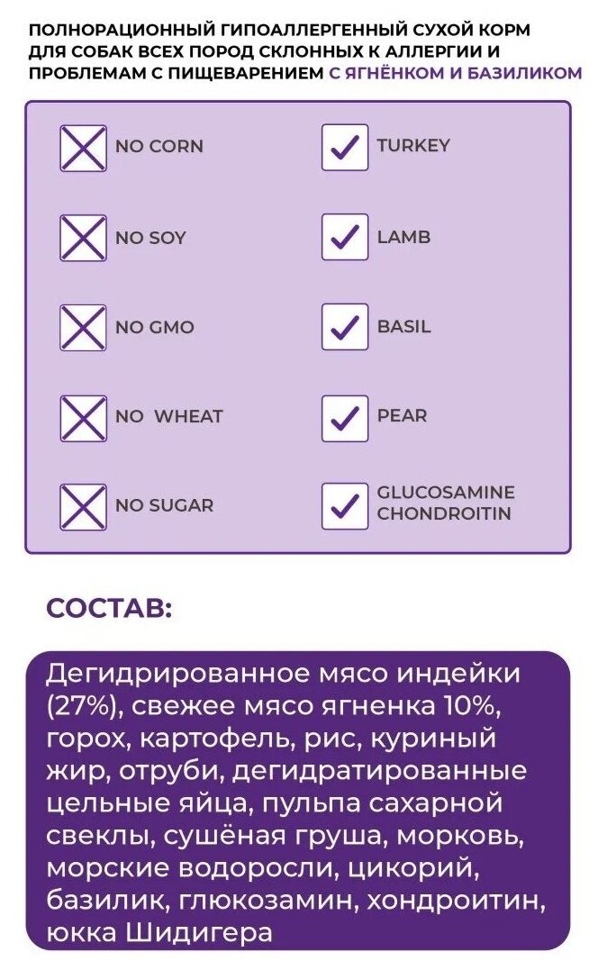 | Ингредиенты (вкус) | Ягненок,Базилик |