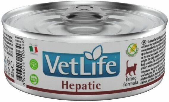 Влажный корм Farmina Vet Life Cat Hepatic диетический корм для взрослых кошек для поддержки функции печени при хронической печеночной недостаточности в консервах