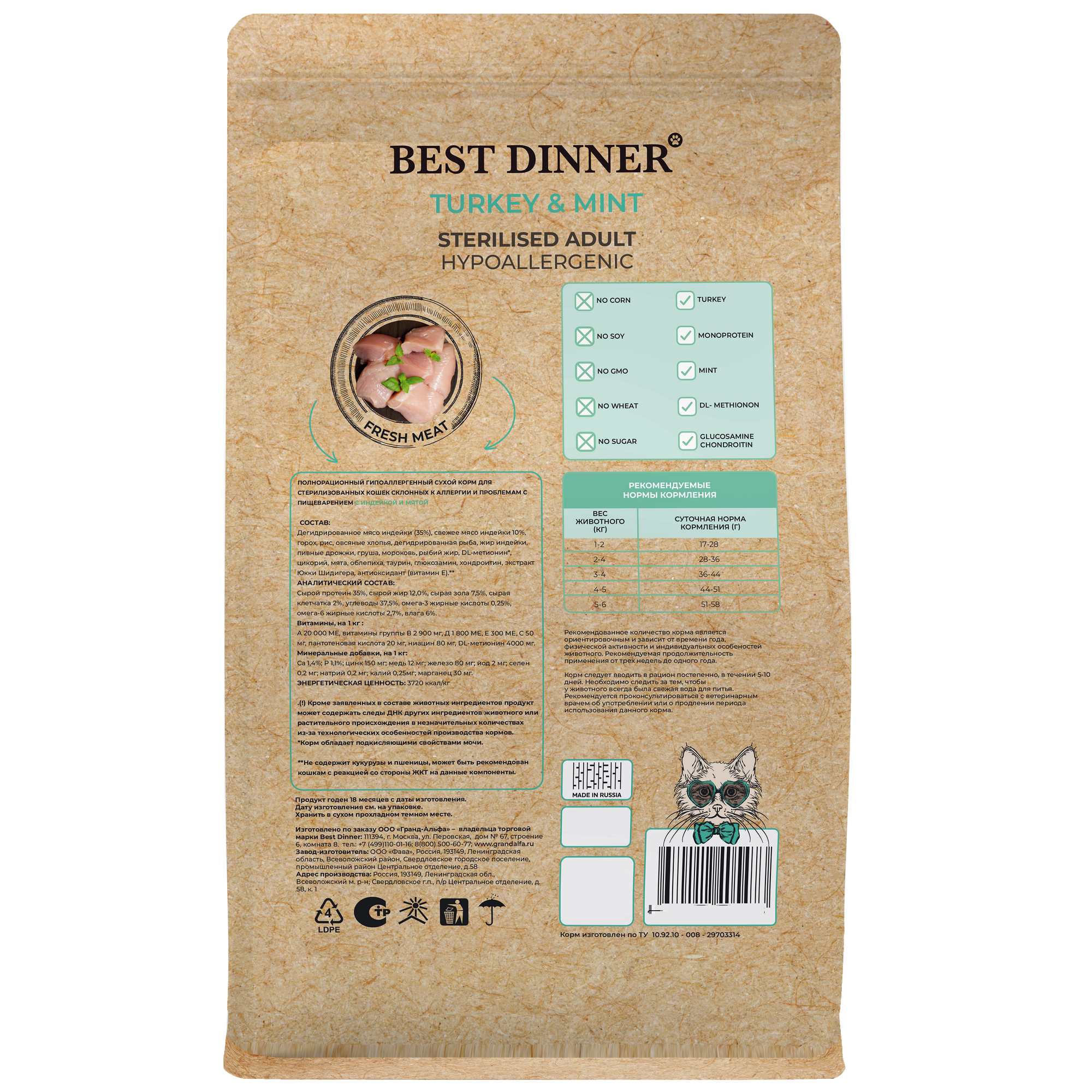 BEST DINNER Holistic Hypo Adult Veal&Oregano Корм сух.телятина/орегано д/кошек 10кг (78107)