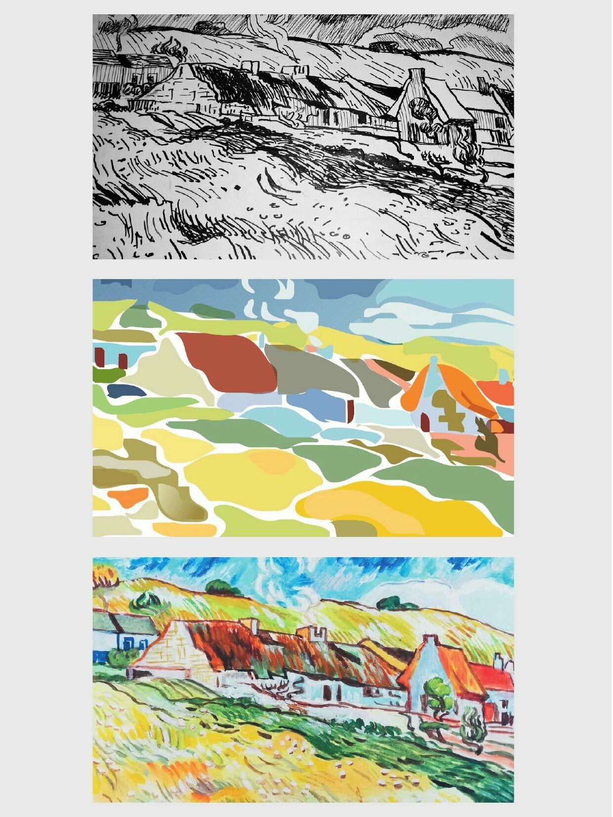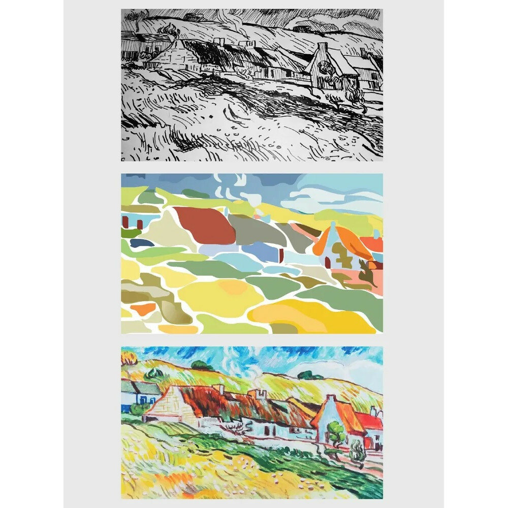 На примере десяти картин Ван Гога разных жанров, - а среди них "Звездная ночь", "Кафе в Арле", "Автопортрет", "Подсолнухи", - художник, известный искусствовед Александр Таиров поэтапно показывает, как работал мастер. Повторяя, вы сможете нарисовать картину, похожую на вангоговскую, добавив фантазии и глубже раскрыв свой собственный талант живописца. Лучше понять композицию и распределение цвета на полотне помогут раскраски, сделанные для каждой работы Ван Гога.