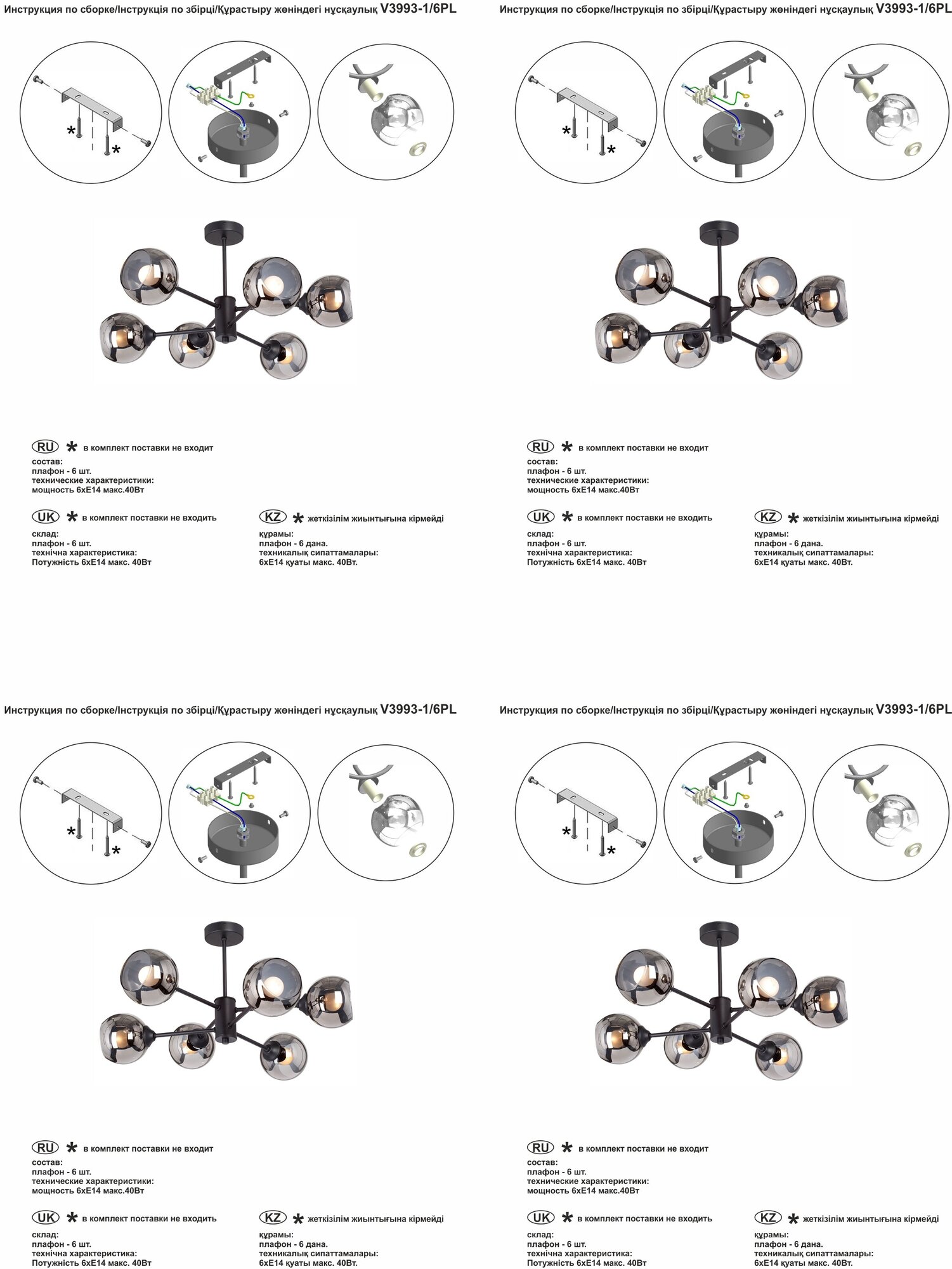 | Количество плафонов | 6 |