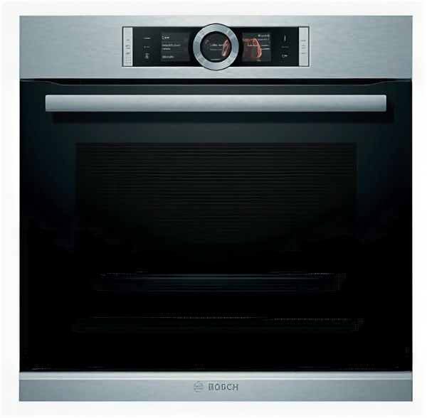Духовой шкаф Bosch — это электрическая независимая модель из линейки Serie | 8. Ее внутренний объем составляет 71 литр, благодаря чему есть возможность запекать большие блюда. Она оформлена в цвете «нержавеющая сталь», благодаря чему отлично впишется в любой современный кухонный интерьер — например, в стиле хай-тек. Управление осуществляется посредством использования сенсорных кнопок и Control Ring. Благодаря многофункциональным часам Easy Clock можно с легкостью отслеживать время до окончания работы одной из программ.