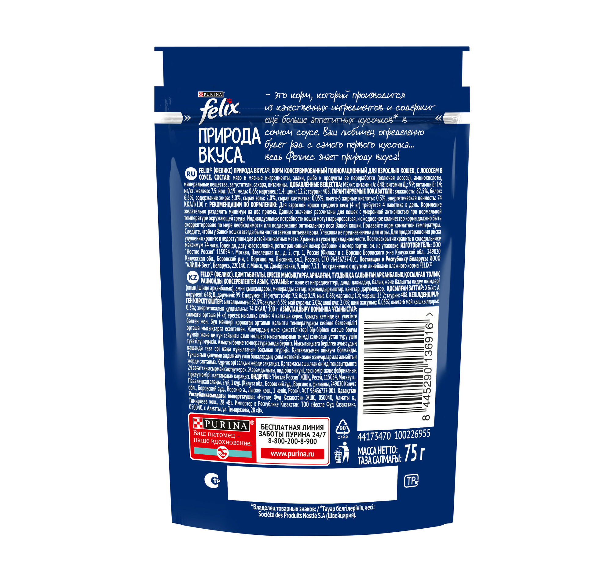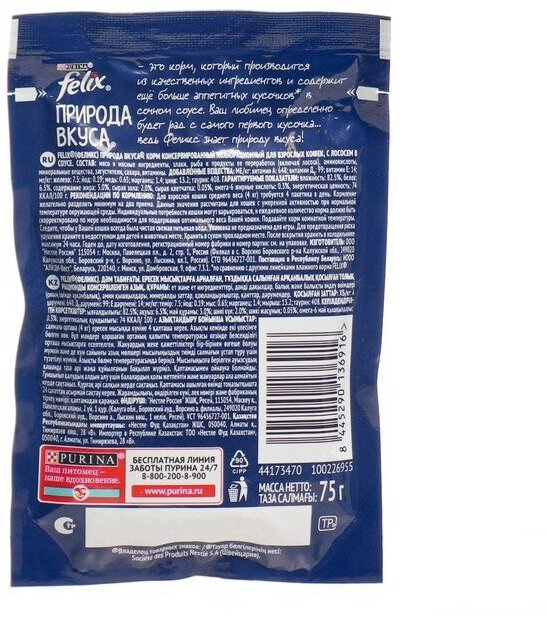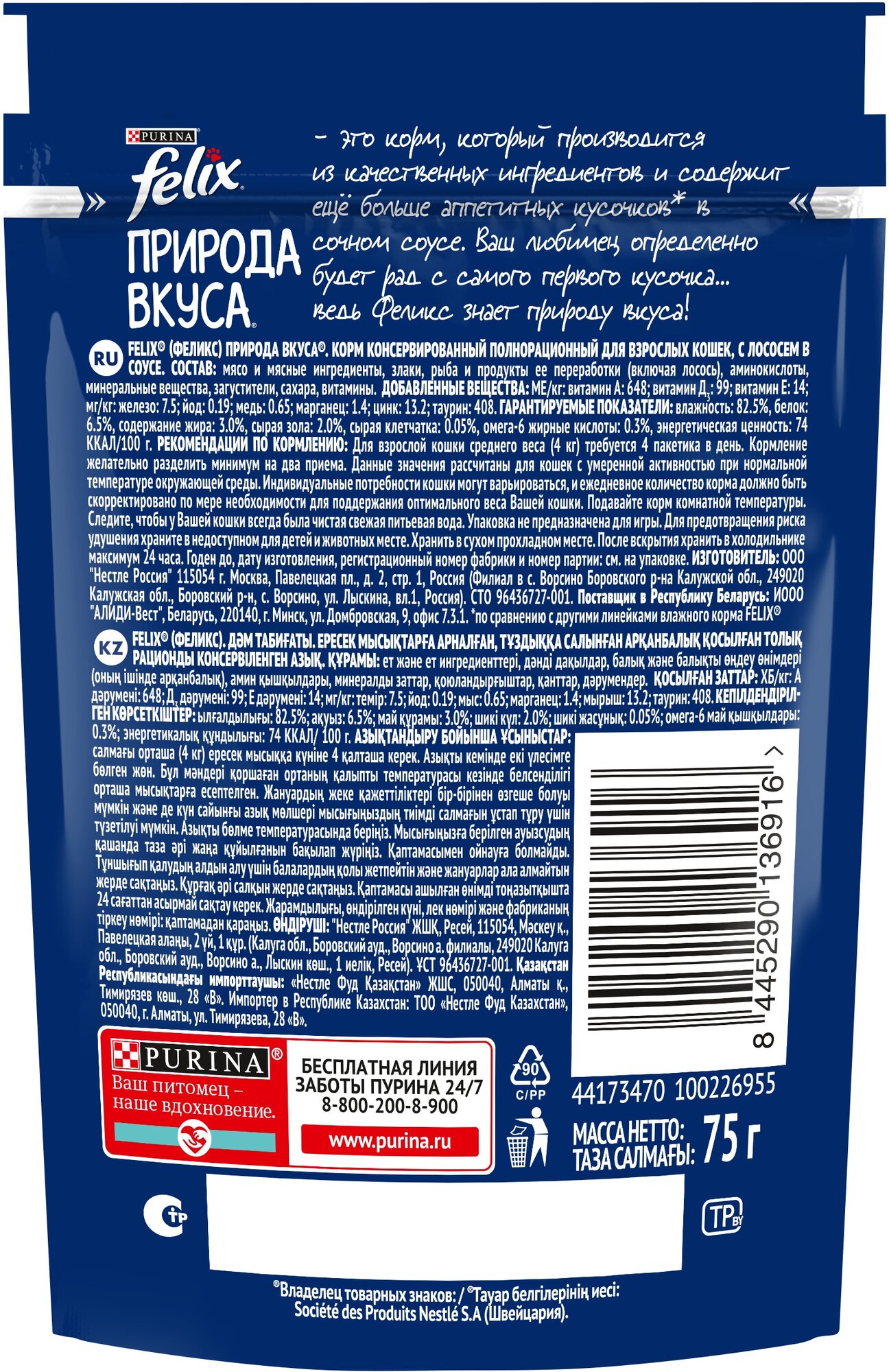 Felix Влажный корм Природа вкуса для взрослых кошек с лососем в соусе 85 г