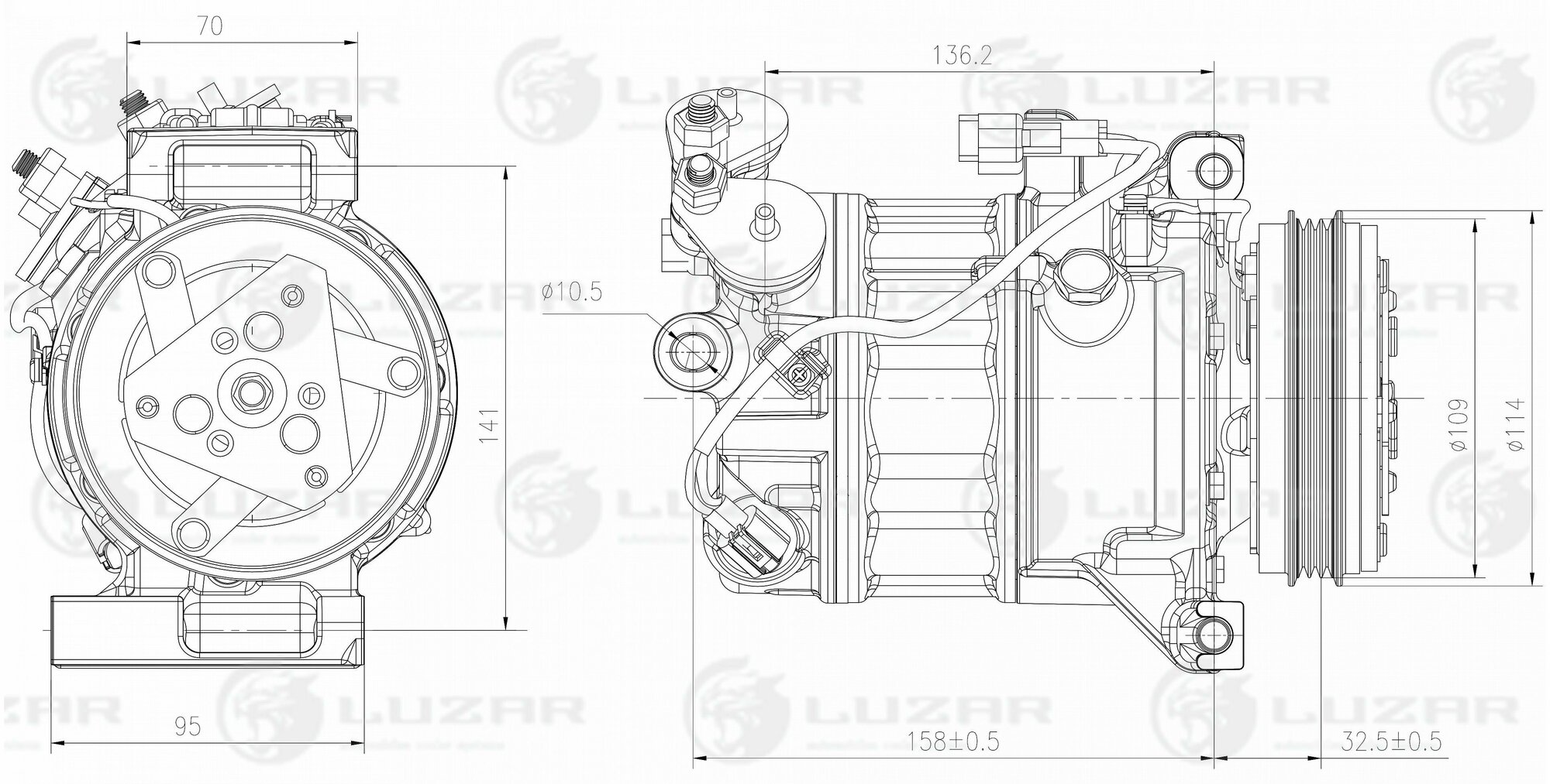 Компрессор кондиционера для автомобилей Volvo S60 II (06-)/S80 II (06-)/XC60 (08-)/XC70 (07-) LUZAR (LCAC 1055)