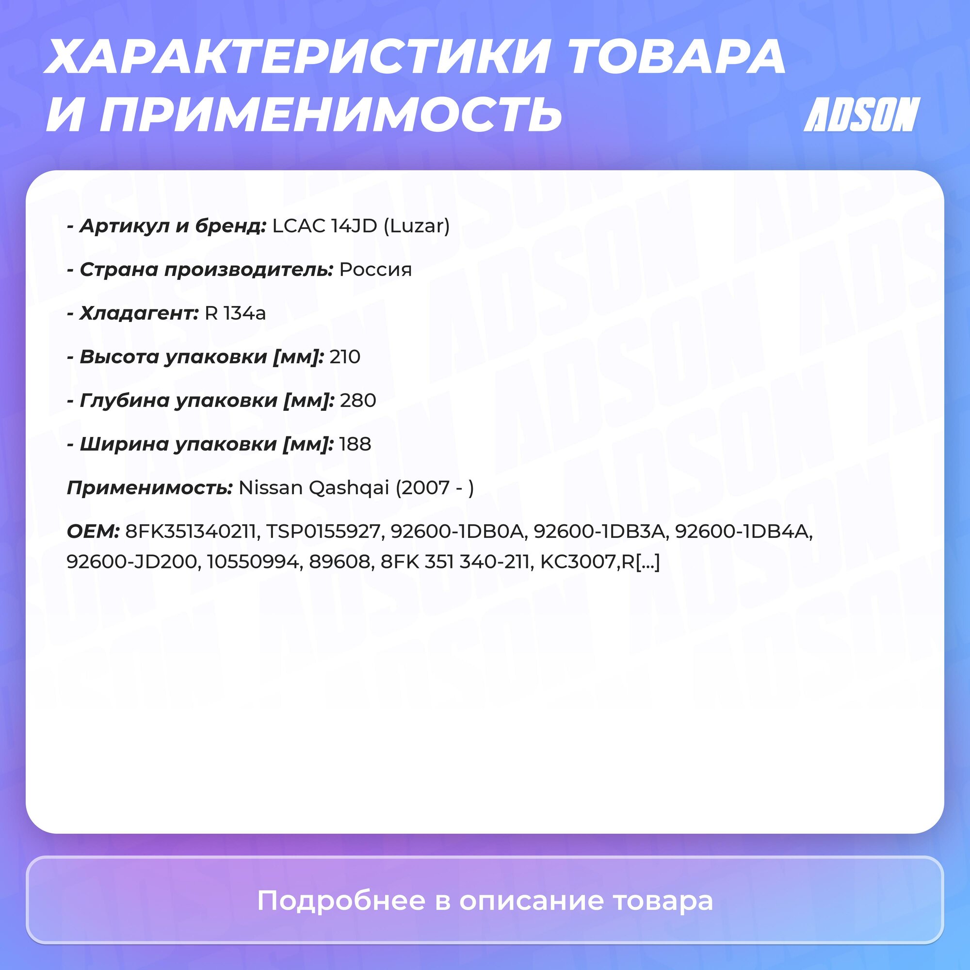Сервис сравнения цен СкидкаГИД предлагает сравнить цены на товар «Компрессор кондиционера для автомобилей Qashqai (06-) 2.0i LUZAR (LCAC 14JD)»