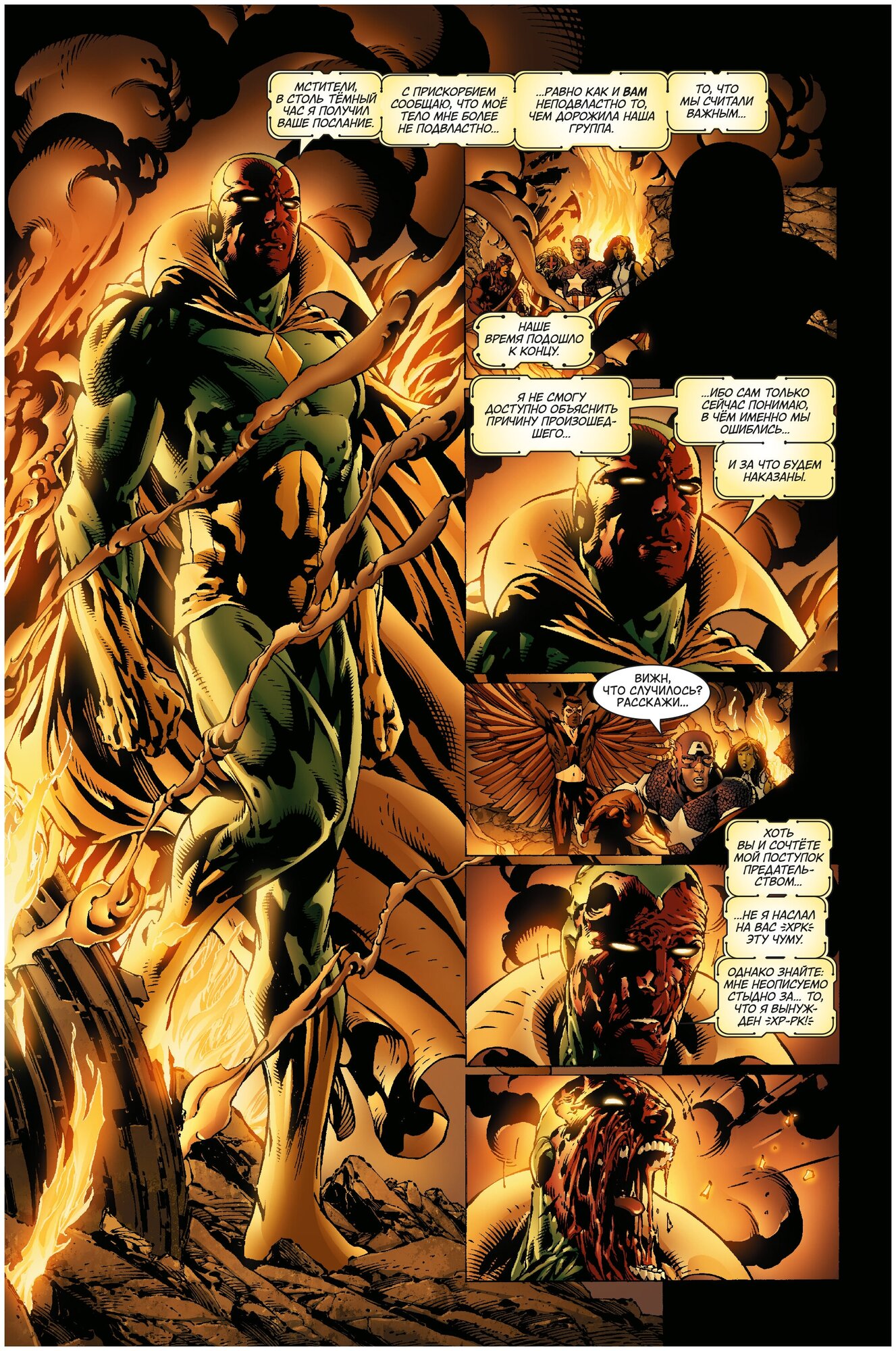 В книге собраны комиксы "Мстители" (1998) #500-503 и #500 (режиссёрская версия); "Мстители: финал"; "Новые Мстители" (2004) #1-10 и #1 (режиссёрская версия), а также "Архив Мстителей: досье на суперзлодеев". Автор сценария - Брайан Майкл Бендис, художники Дэвид Финч, Стив Макнивен и многие другие.