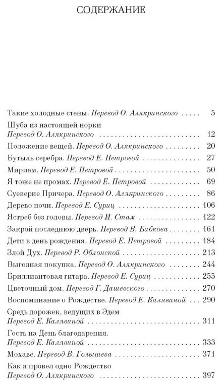Трумен Капоте, автор таких бестселлеров, как «Голоса травы», «Хладнокровное убийство» и «Завтрак у Тиффани» (самое знаменитое произведение Капоте, прославленное в 1961 году экранизацией с Одри Хепберн в главной роли), входит в число крупнейших американских прозаиков ХХ века. Многие, и сам Капоте в том числе, полагали, что именно в рассказах он максимально раскрылся как стилист («Именно эта литературная форма — моя величайшая любовь», — говорил он). В данной книге вашему вниманию предлагается полное собрание короткой прозы выдающегося мастера.