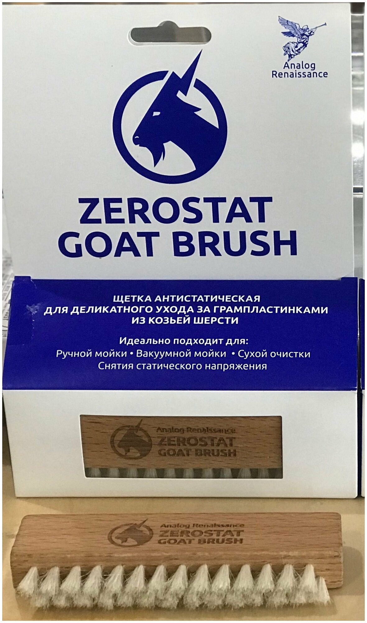 Деликатная щетка из козьей шерсти Analog Renaissance - щетка антистатическая для деликатного ухода за грампластинками. Идеально подходит для ручной мойки, вакуумной мойки, сухой очистки, снятия статического напряжения. Щетка из козьей шерсти - универсальный инструмент для деликатной чистки пластинок. Козий волос мягкий, не навредит винилу и достаточно упругий, он реже обламывается и им удобно чистить и мыть пластинки. Основные особенности: антистатический эффект; два ряда пучков; удобная ручка из вощеного бука.