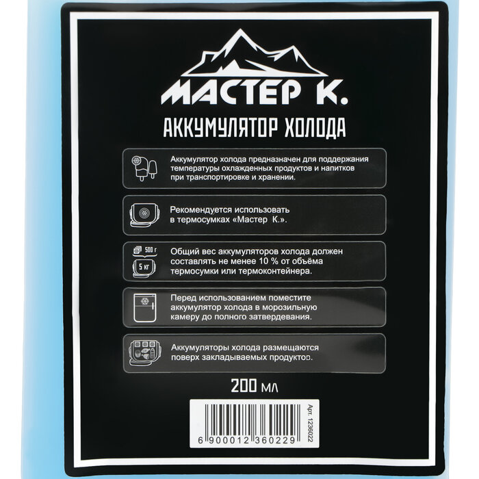| Описание | Аккумулятор холода предназначен для нагнетания холода и увеличения срока сохранения продуктов холодными. Он представляют собой герметичную емкость, заполненную специальным теплоемким гелевым раствором. |