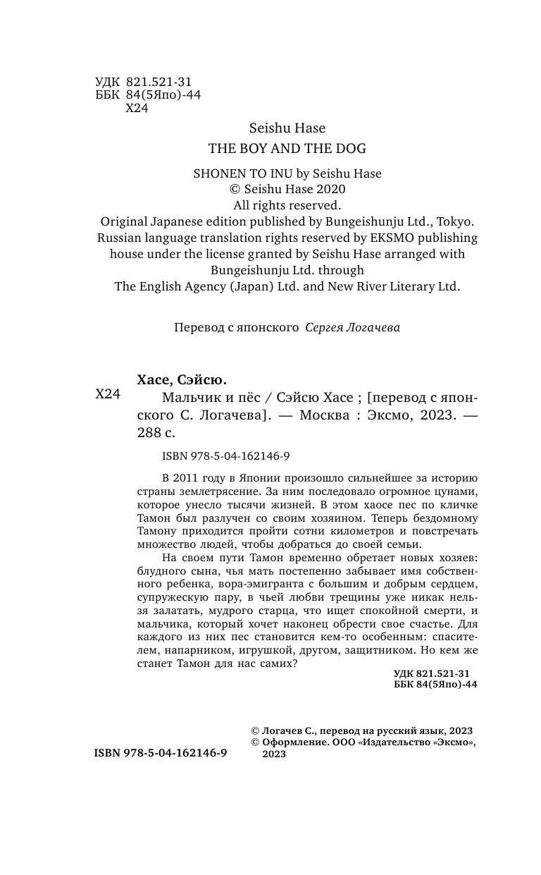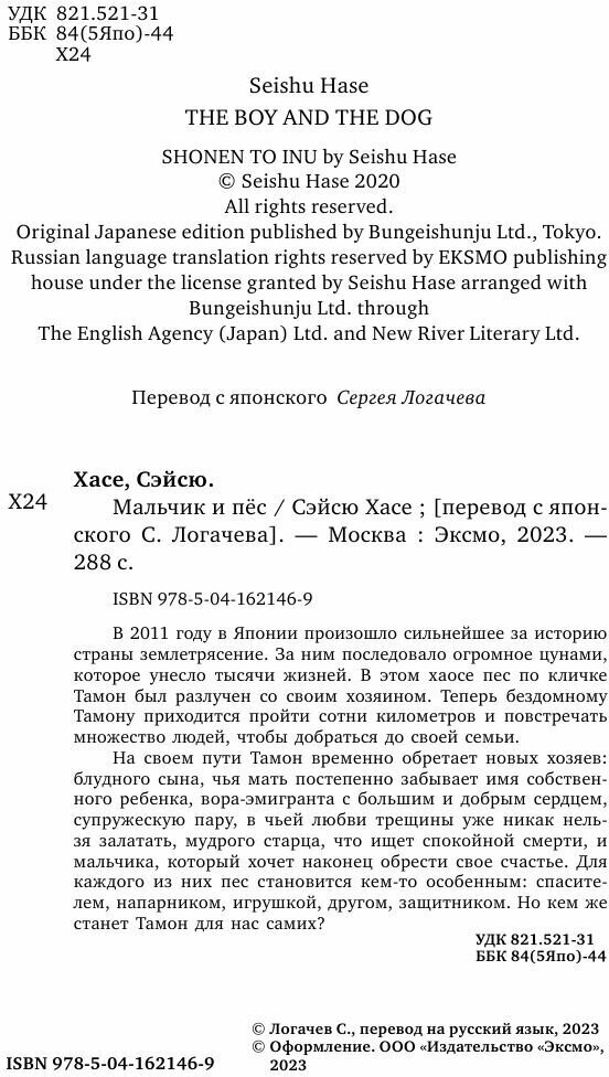 Книга: Мальчик и пёс (Сэйсю Хасе); Эксмо, Inspiria, Редакция 1, 2022
