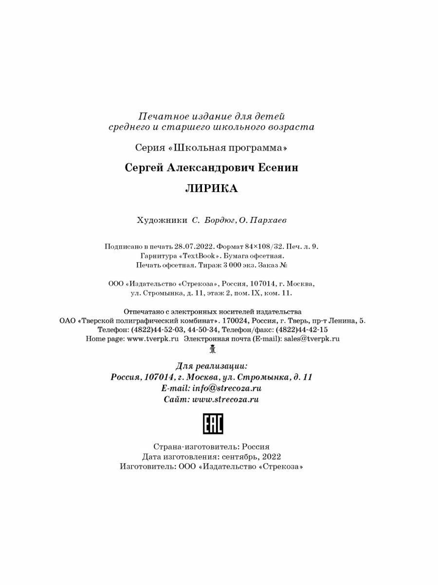 Книга: Лирика (Есенин Сергей Александрович); Стрекоза, 2022