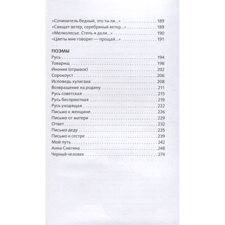 В этот сборник вошли произведения великого русского поэта Сергея Александровича Есенина - его лирические стихотворения, воспевающие красоту русской природы, народный русский колорит, хулиганские и философские стихи о русской душе, о судьбе России. Также в сборник включены поэмы "Русь", "Товарищ", "Инония", "Сорокоуст", "Исповедь хулигана", "Возвращение на родину", "Письмо к женщине", "Мой путь", "Анна Снегина", "Черный человек" и другие.