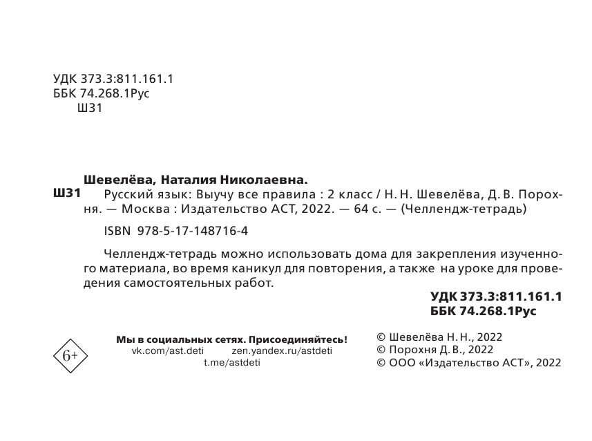 Русский язык: Выучу все правила: 2 класс (Шевелева Наталия Николаевна, Порохня Дмитрий Владимирович); Образовательные проекты, 2022