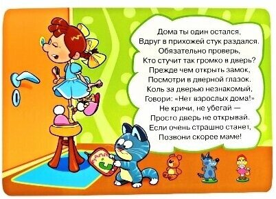 Комплект корточек "УРОКИ БЕЗОПАСНОСТИ В ДОМЕ" познакомит малышей с правилами безопасности, которые необходимо соблюдать, находясь дома. Вашему ребёнку не составит труда запомнить все правила, так как они изложены в стихах. А яркие картинки обязательно заинтересуют ребят и помогут усвоить новые знания.