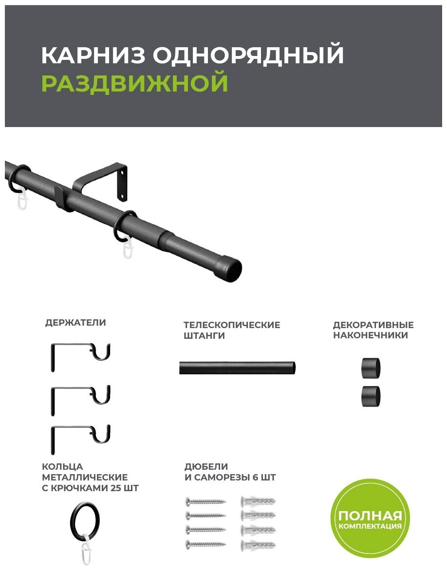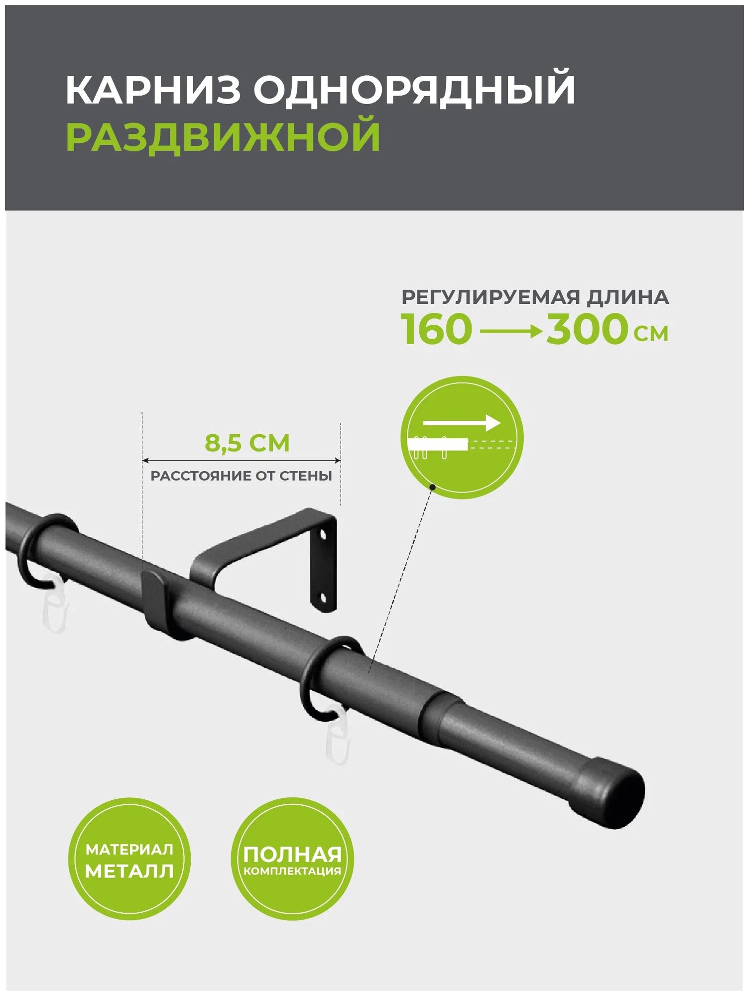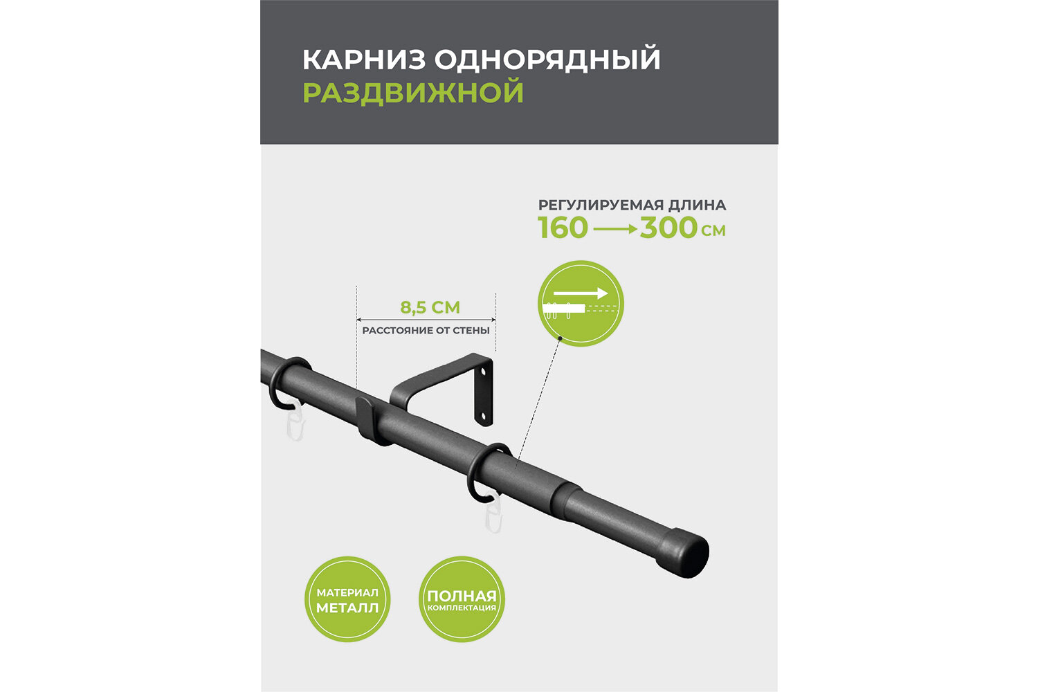 На сегодняшний день товар «Карниз однорядный Arttex Телескоп 56 300 см 1 шт. черный матовый 56.551» можно купить с кешбеком в 1 магазине: Яндекс.Маркет