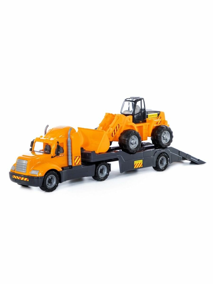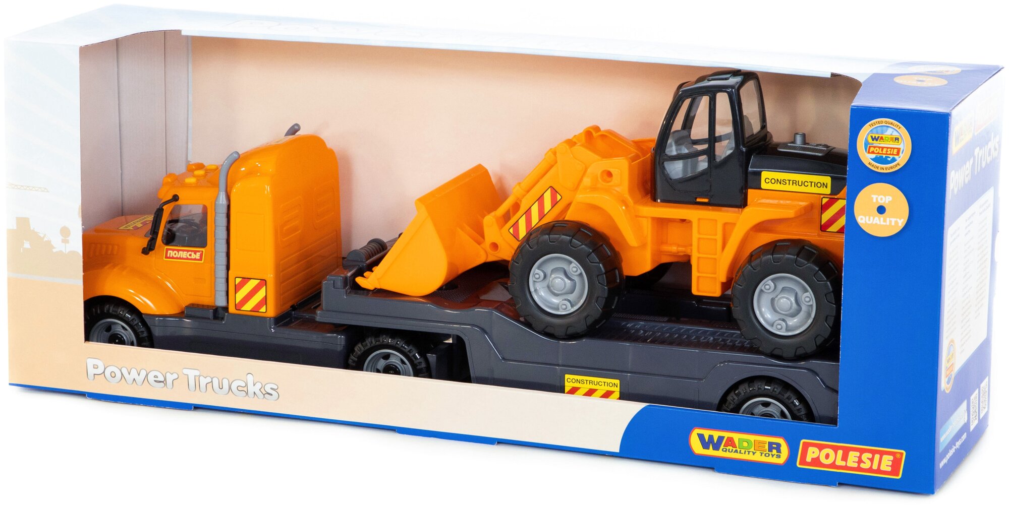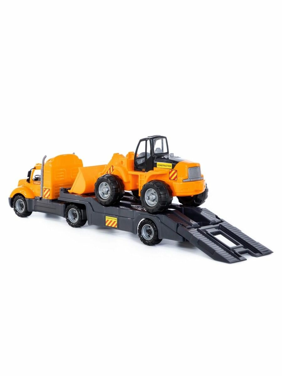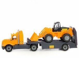 Набор выполнен из полипропилена. Набор состоит из трейлера для перевозки, трактора - погрузчика, который предстоит перевозить. Набор станет неотъемлемой частью мальчишеских забав. Подвижные части сделают ролевую игру увлекательной.