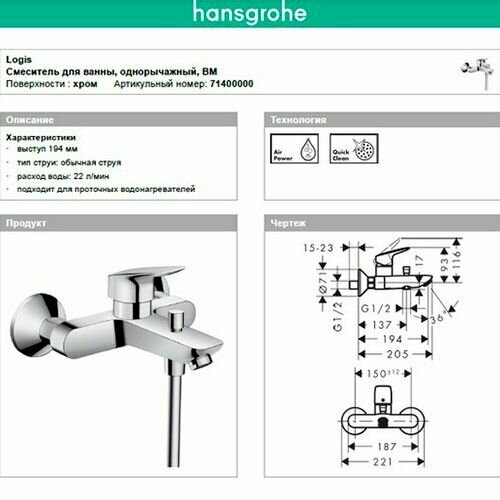 | Производитель | Hansgrohe |