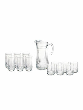 Питьевой набор Люминарк Император имеет изящную рельефную фактуру, напоминающую хрусталь. Отличный подарок для настоящих эстетов. Питьевой набор Люминарк Император из 13 предметов на 6 персон: кувшин 1,6 л - 1 шт. Стаканы низкие 300 мл - 6 шт. Стаканы высокие 310 мл - 6 шт.