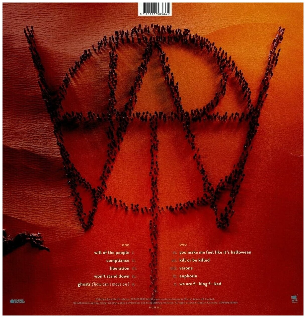 1. Will Of The People 2. Compliance 3. Liberation 4. Won’t Stand Down 5. Ghosts (How Can I Move On) 6. You Make Me Feel Like It’s Halloween 7. Kill Or Be Killed8. Verona 9. Euphoria 10. We Are F***g F***d.