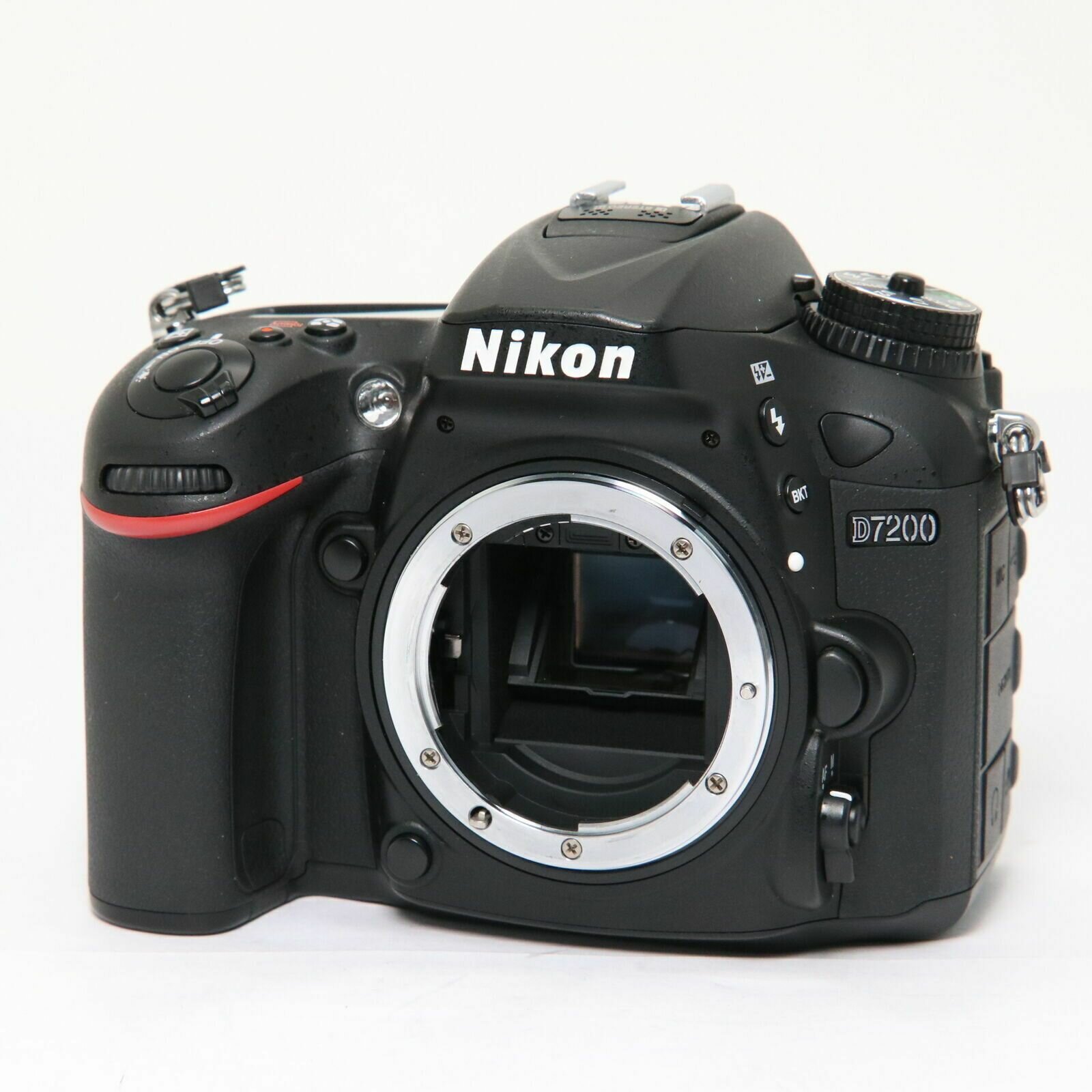 Зеркальная камера среднего уровня, наследница модель D7100, выпущенная в 2015 году. Большинство характеристик в новом аппарате остались без изменений; тем не менее, появились беспроводные модули Wi-Fi и NFC с поддержкой дистанционного управления, а вес уменьшился почти на 100 г. Сенсор камеры Nikon D7200 — APS-C, на 24,2 эффективных Мп, без АА-фильтра, с чувствительностью до ISO 25600 (в ч/б режиме — до 102400). Обработку изображения обеспечивает процессор Expeed 4, мощности которого хватает на съёмку серий в 100 JPEG или 27 RAW (14-bit). Основной 3,2" дисплей дополнен дополнительным экранчиком. В комплект поставки входит объектив.