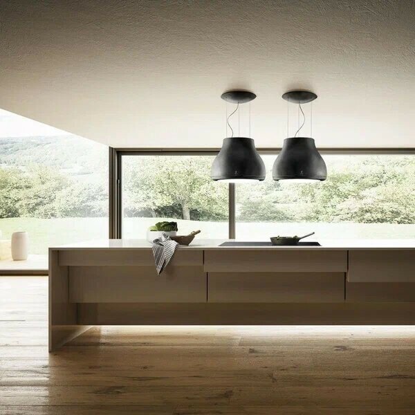 Вытяжка интерьерная. Считаю, что очень дорогая, но если над островом нужна вытяжка, не такой уж большой выбор, ценовая категория приблизительно одинаковая. Привезли под заказ. Ждали долго. Работает только в режиме фильтрации, для этого режима тянет хорошо. Есть индикатор загрязнения воздуха, что очень удобно. Смотрится отлично, здесь без претензий