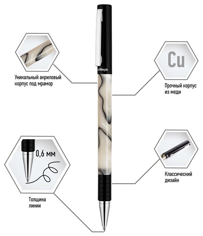 Для ярких, неординарных личностей прекрасно подойдёт шариковая ручка Berlingo Fantasy. Она станет отличным подарком для людей, которые любят выражать свою индивидуальность - достаточно взглянуть на её необычный дизайн. Акриловый корпус создаёт эффект "под мрамор", а сочетание бежевого и черного цветов - контраст. Металлический грипп имеет рифление, что делает его нескользящим. На колпачке имеется хромированный клип, который позволит закреплять ручку где потребуется и работать комфортно. Изделие можно использовать для любого стиля письма, потому что пишущий узел оставляет линию толщиной 0,7 мм, а толщина линии письма также составляет 0,7 мм.