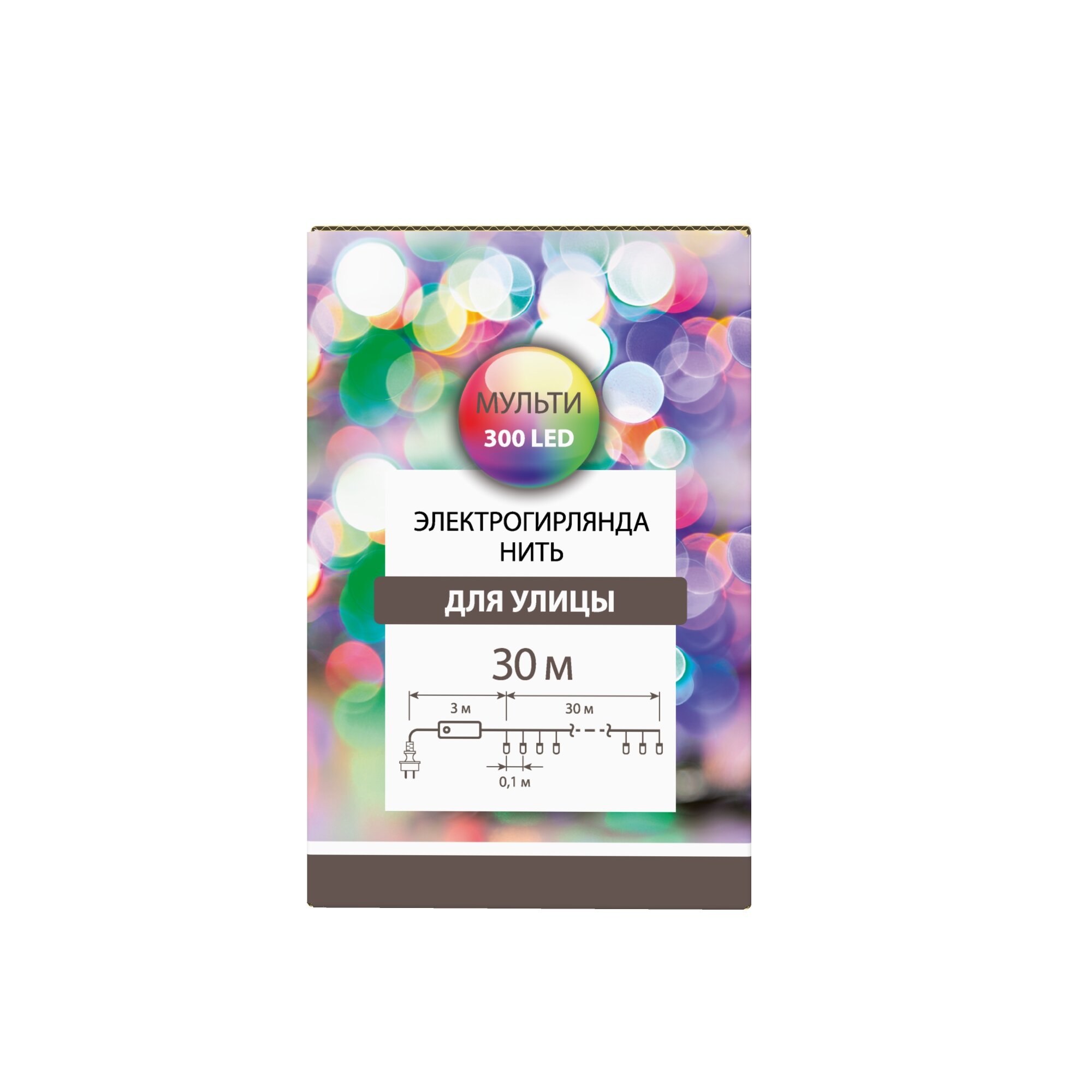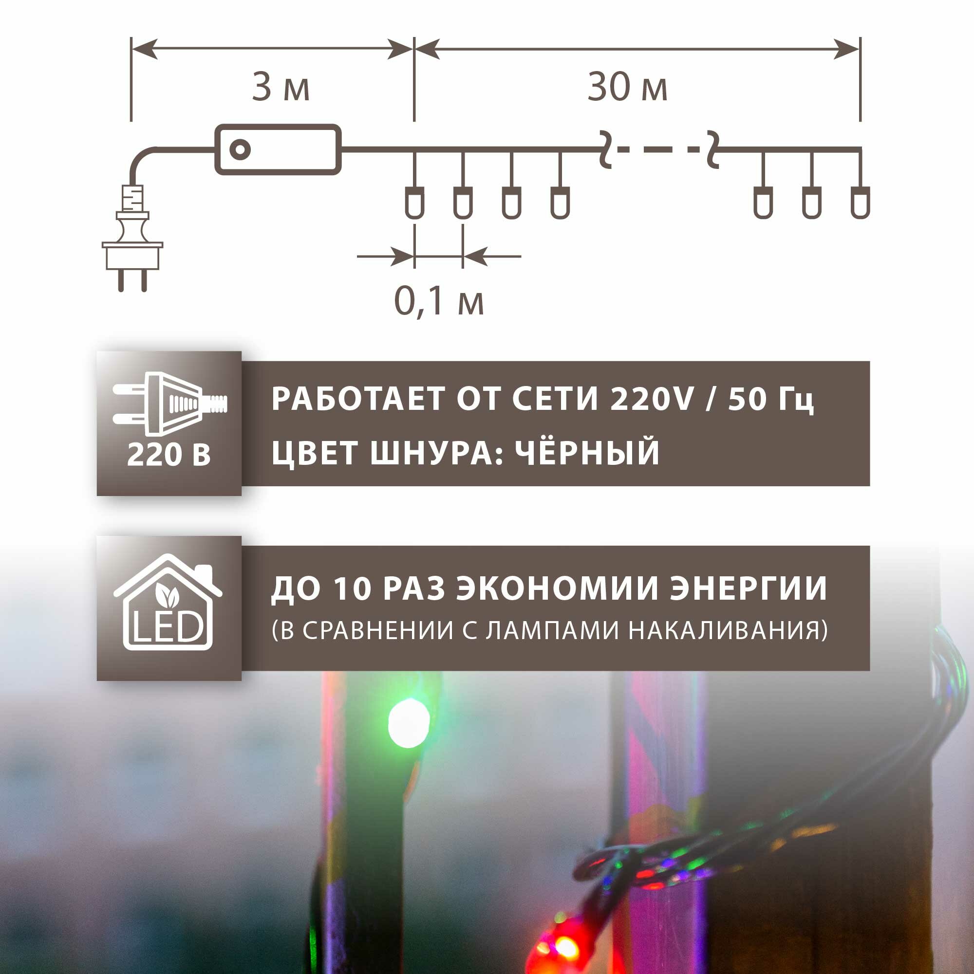 Электрогирлянда «Нить», 30 м, 300 сверхъярких разноцветных светодиодов, для использования снаружи и внутри помещений.