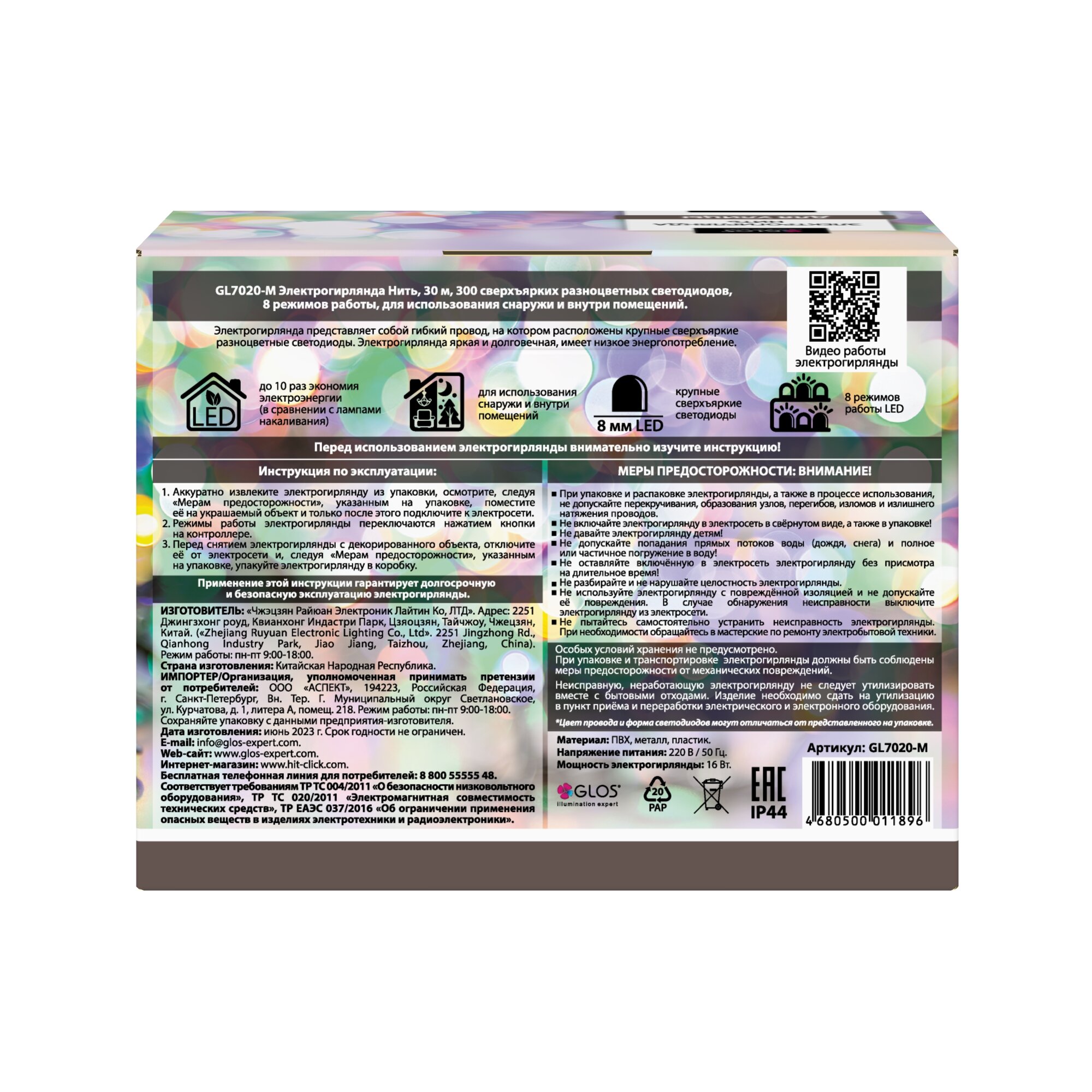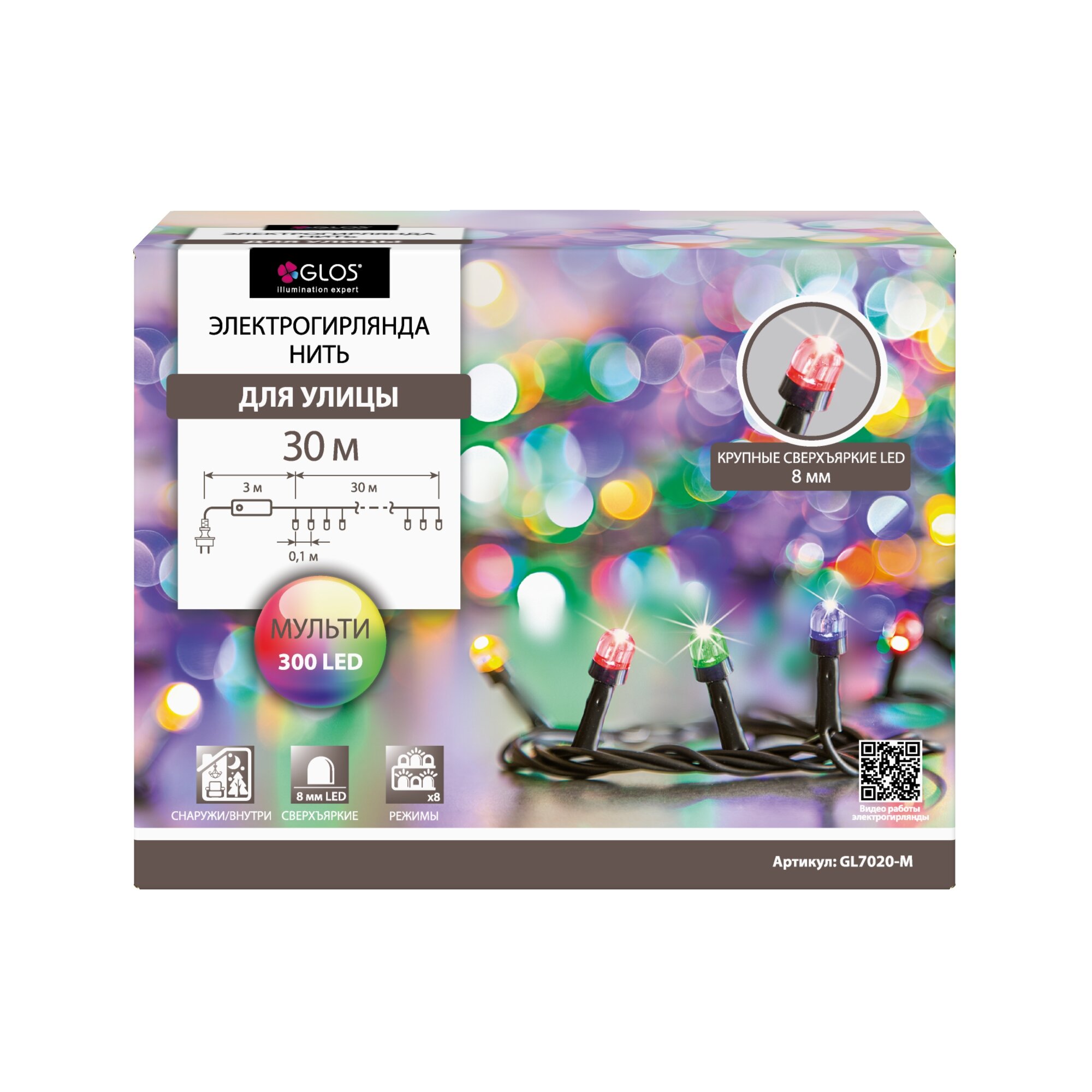 гирлянда 30м 300LED мульти GLOS (GL7020-M)