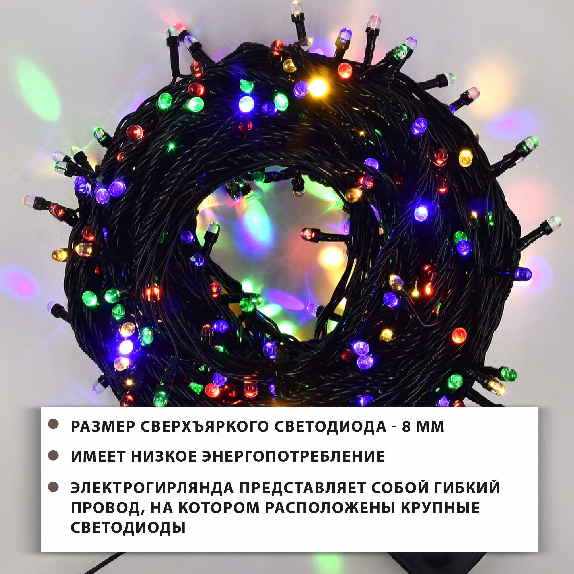 Гирлянда светодиодная 500 led ламп | Длина 30м | Разные цвета свечения