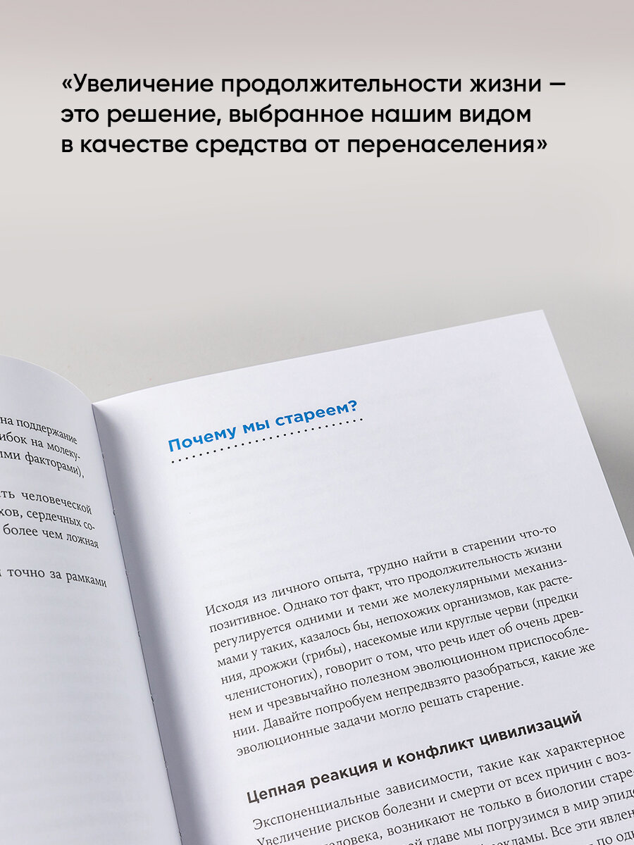 Любопытный труд, посвящённый теме старения и борьбы с ним. Автор- известный российский биофизик, эксперт в области наук о старении, долгое время учившийся на Западе. Книга в целом рассматривает теорию того, как можно избежать старения. Да, это не фактологический материал, а скорее рассуждения о различных теориях, к реализации которых ещё не всегда хватает возможностей.