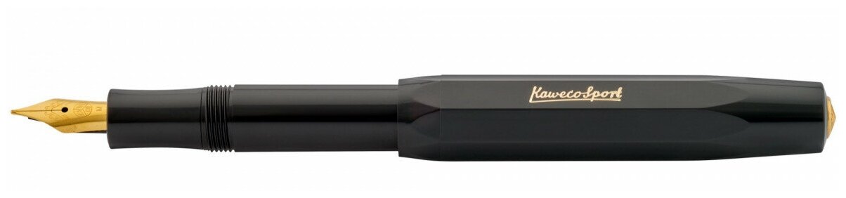 Винтажная перьевая ручка от Kaweco (дизайн серии остался неизменным с 1936 года). Удобный карманный размер. Массивный восьмигранный колпачок на резьбе. Позолоченное стальное перо (23Кт) с иридиевым наконечником. Длина ручки в закрытом состоянии - 10.5 см. Корпус из прочного ABS-пластика и поликарбоната. К ручке подходят сменные картриджи Kaweco стандарта International (short) и съемный клип к восьмигранным ручкам Kaweco (продается отдельно). Синий картридж в комплекте.