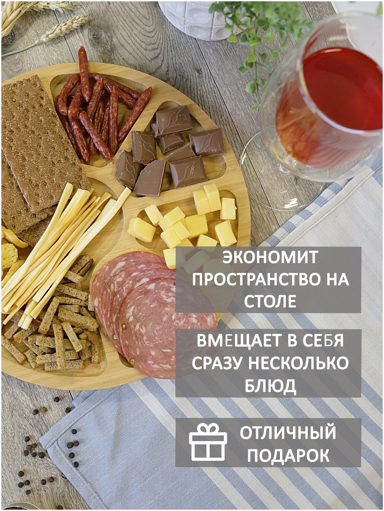 Предназначение: для сервировки стола, эффектной подачи закусок. Позволяет разместить несколько продуктов в одном месте, не смешивая их между собой.