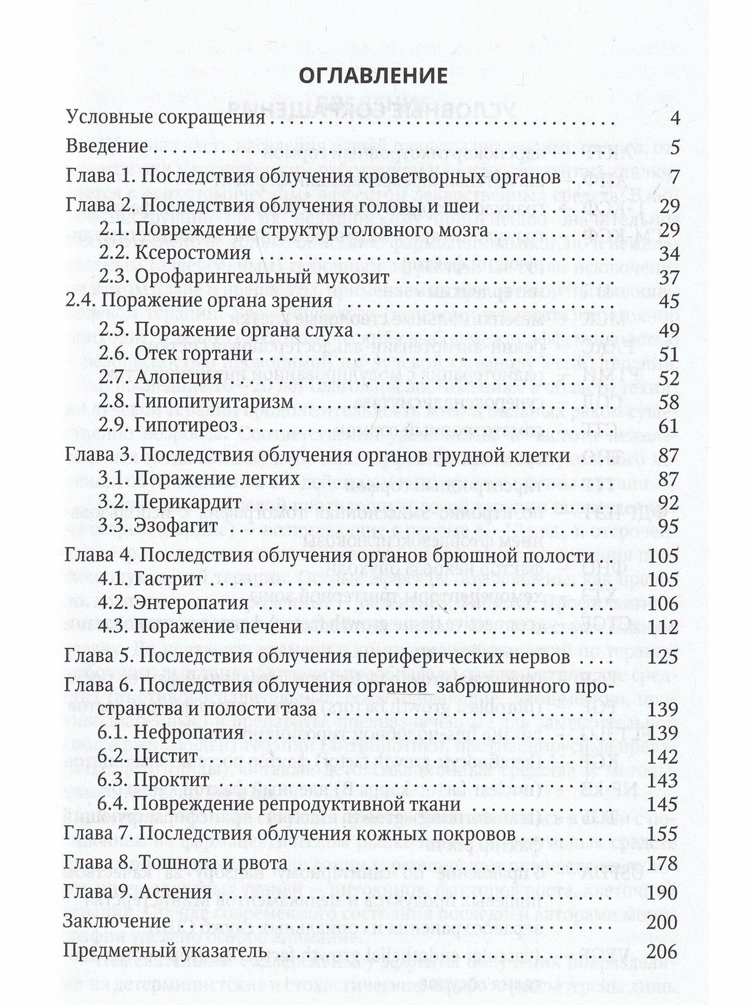 В монографии изложены современные представления о клинических проявлениях, механизмах формирования, средствах профилактики и лечения острых и отдаленных осложнений лучевой противоопухолевой терапии. Рассмотрены основные последствия терапевтического облучения кроветворных органов, головы и шеи (повреждения структуры и функции головного мозга, ксеростомия, орофарингеальный мукозит, нарушение функции органов зрения и слуха и др.); органов грудной клетки (перикардит, пневмонит, эзофагит), органов брюшной полости, забрюшинного пространства и таза (гастрит, энтеропатия, поражения печени, нефропатия, цистит и др.). В отдельные главы выделены поражения и клинические синдромы, развивающиеся при облучении различных областей тела (дерматит, эметический синдром, астения).