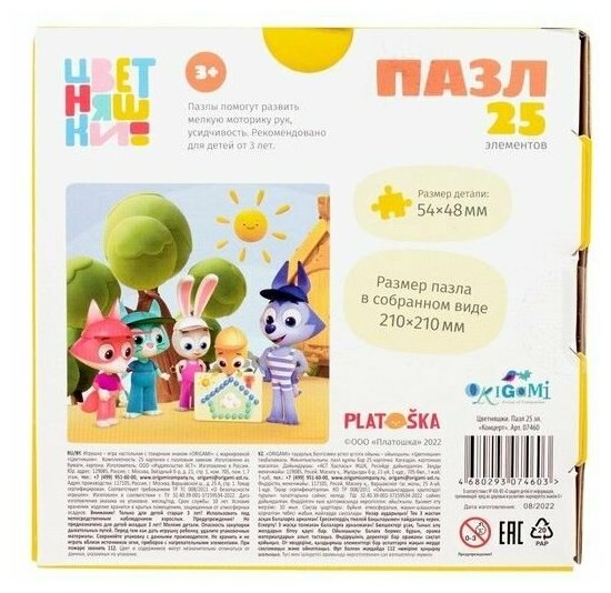 Пазл 25 элементов, основанный на любимых сюжетах мультфильма "Цветняшки" понравится любому ребенку, а сборка яркой картинки принесет радость не только малышам, но и их родителям. Соберите всю коллекцию новых пазлов!