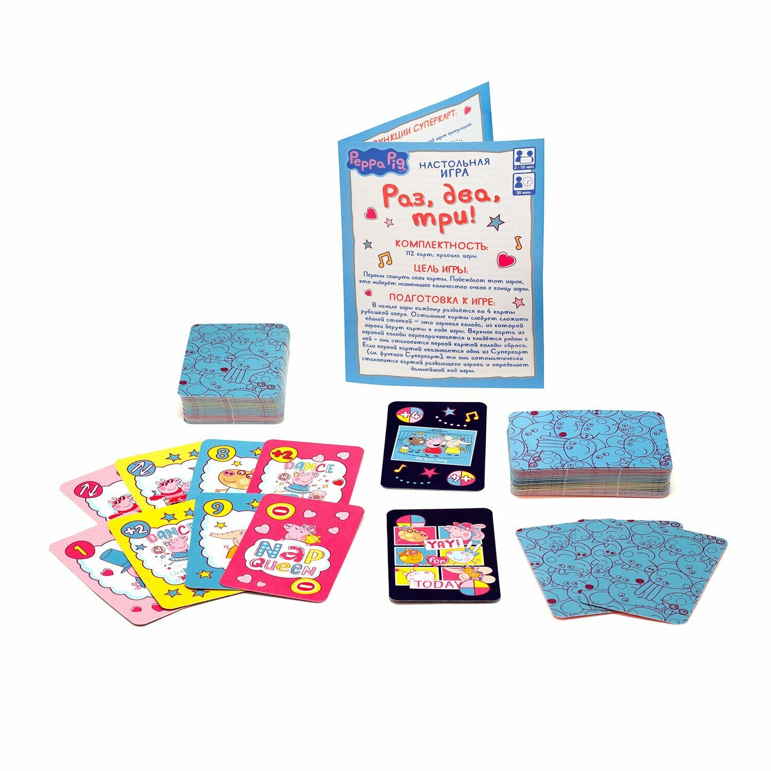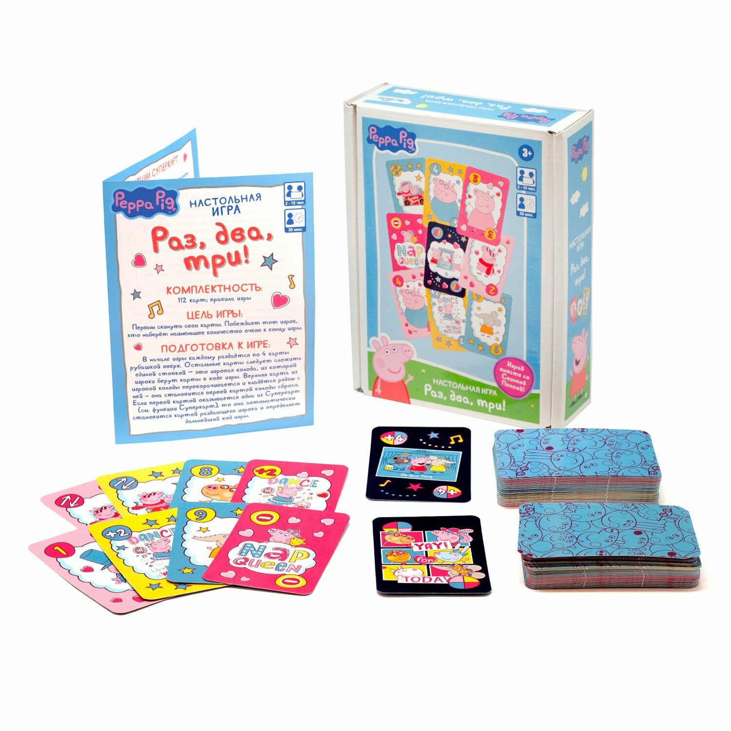 Свинка Пеппа приглашает тебя поиграть в захватывающую игру! Стань первым игроком, кто скинет все свои карты и победит соперников! Простые правила, суперкарты, быстрое и непрерывное взаимодействие с игроками не дадут скучать, а любимые персонажи станцуют и споют для вас настоящее шоу талантов. Бери игру с собой в дорогу или на посиделки с друзьями!