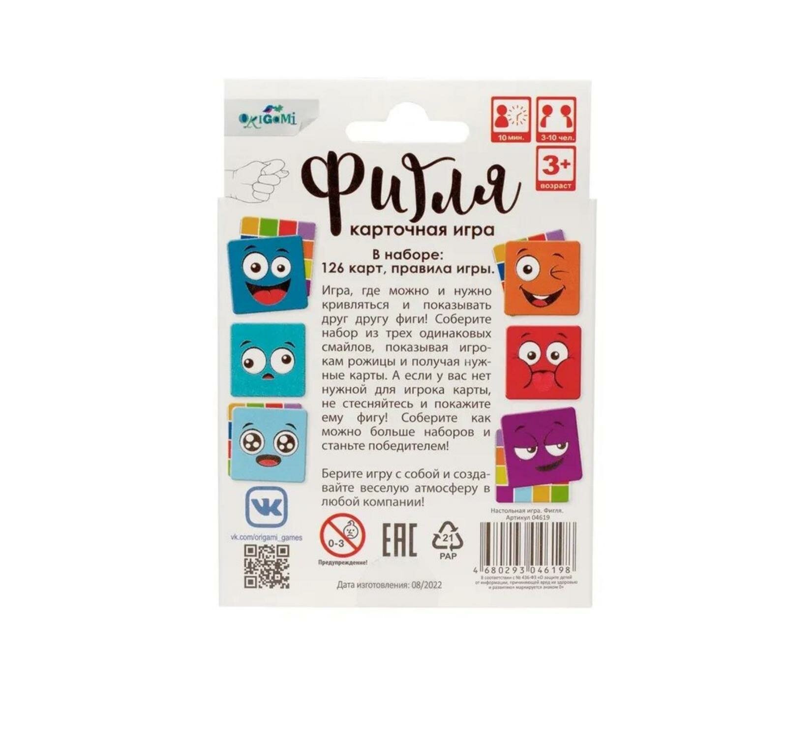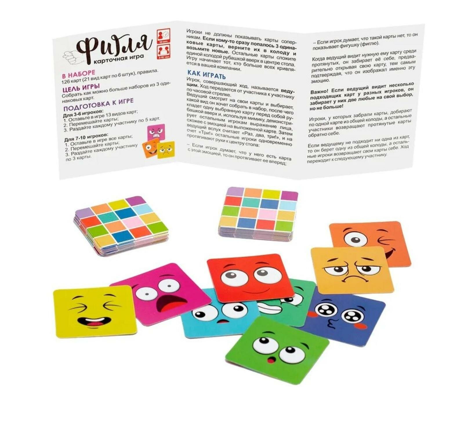 Игра, где можно и нужно кривляться и показывать друг другу фиги! Соберите сет из трех одинаковых смайлов, показывая игрокам рожицы и получая нужные карты. А если у вас нет нужной для игрока карты, не стесняйтесь и покажите ему фигу! Соберите как можно больше сетов и станьте победителем!