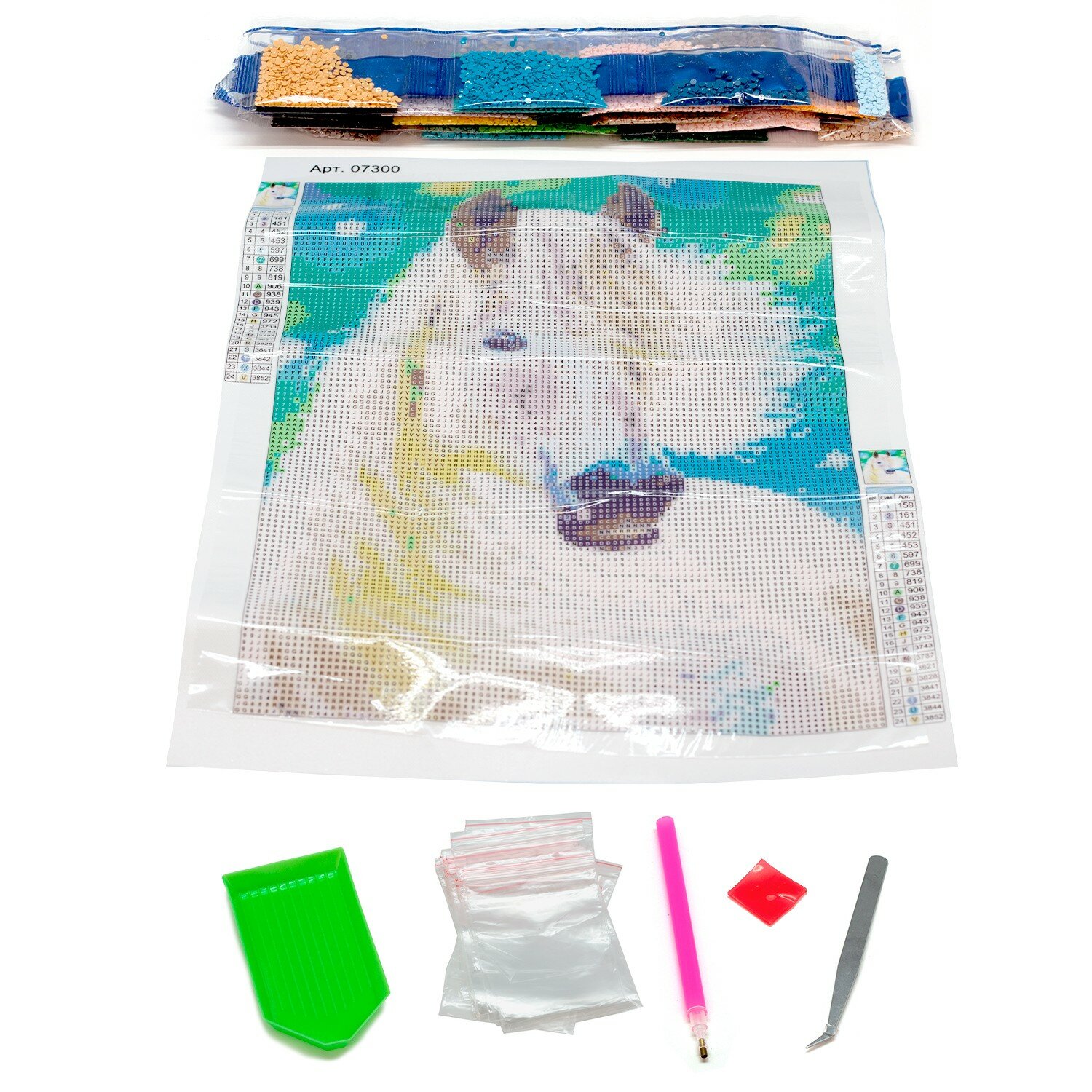 | Комплектация | канва с нанесенным рисунком; инструкция; лоток для страз; стилус; сухой клей; пинцет; стразы |