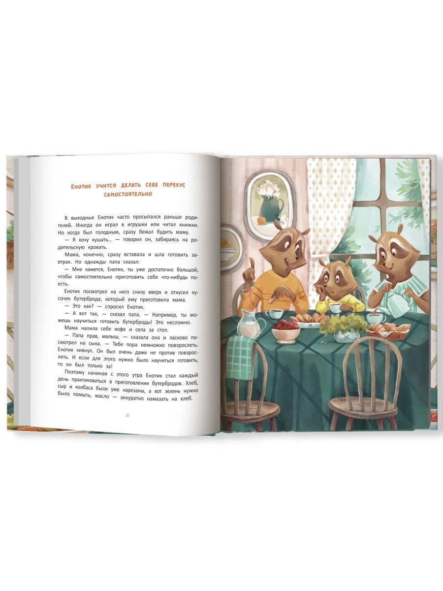 Вместе с малышом Енотиком ваш ребёнок узнает, что уборка может стать весёлым занятием, а помощь родителям - приносить радость, научится готовить себе перекус, сможет подготовиться к возможному переезду или пополнению в семье и узнает, что с появлением второго ребёнка любви станет только больше и её хватит на всех.