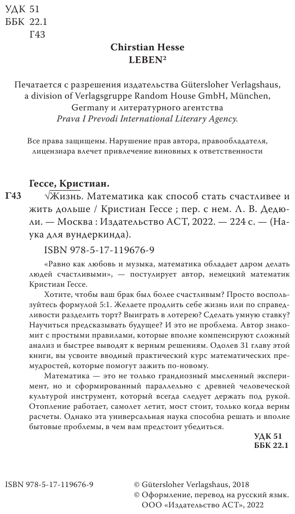 √Жизнь. Математика как способ стать счастливее и жить дольше (Кристиан Гессе); Издательство АСТ, 2018