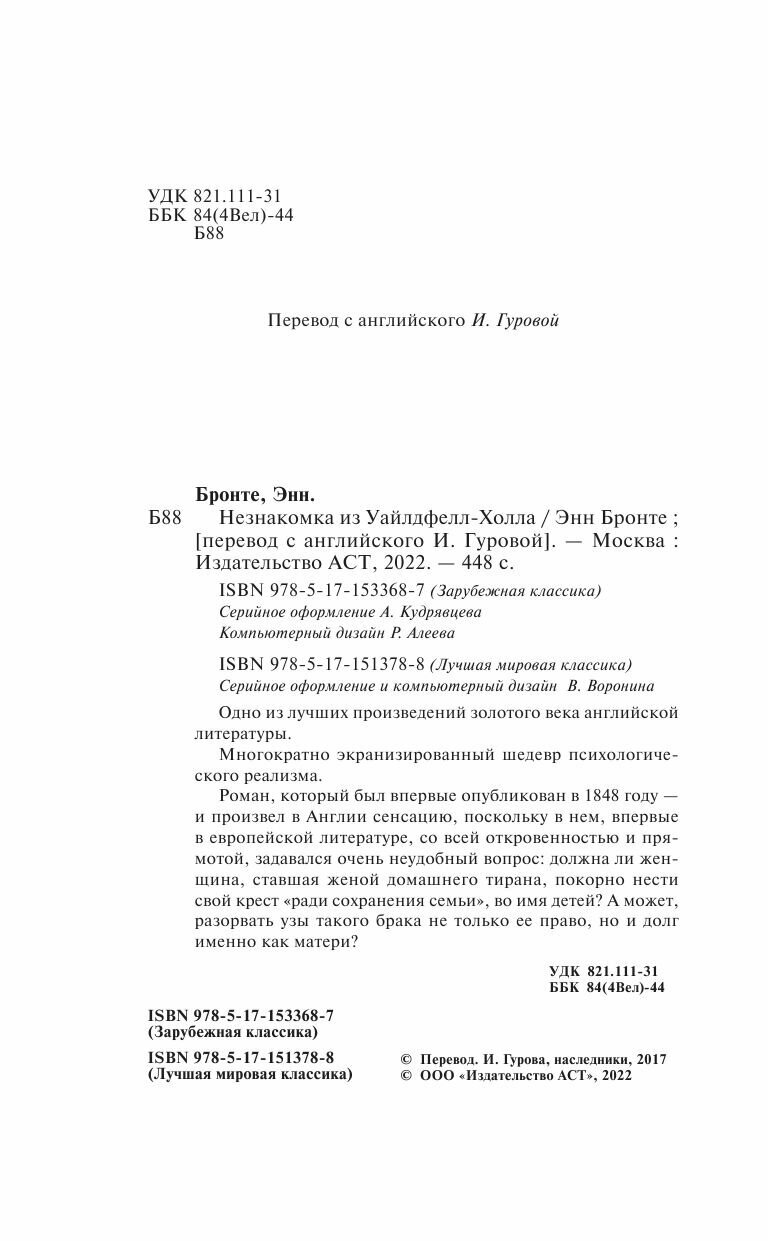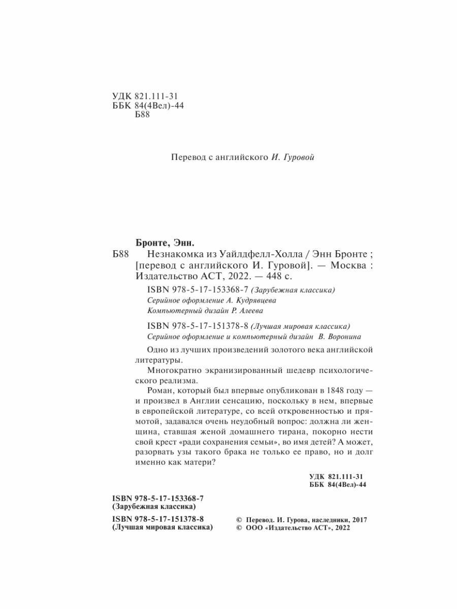 На сегодняшний день товар «Книга: Незнакомка из Уайлдфелл-Холла (Энн Бронте); АСТ, Neoclassic, 2024» можно купить с кешбеком в 4 магазинах: Читай-город, book24, Яндекс.Маркет, Буквоед