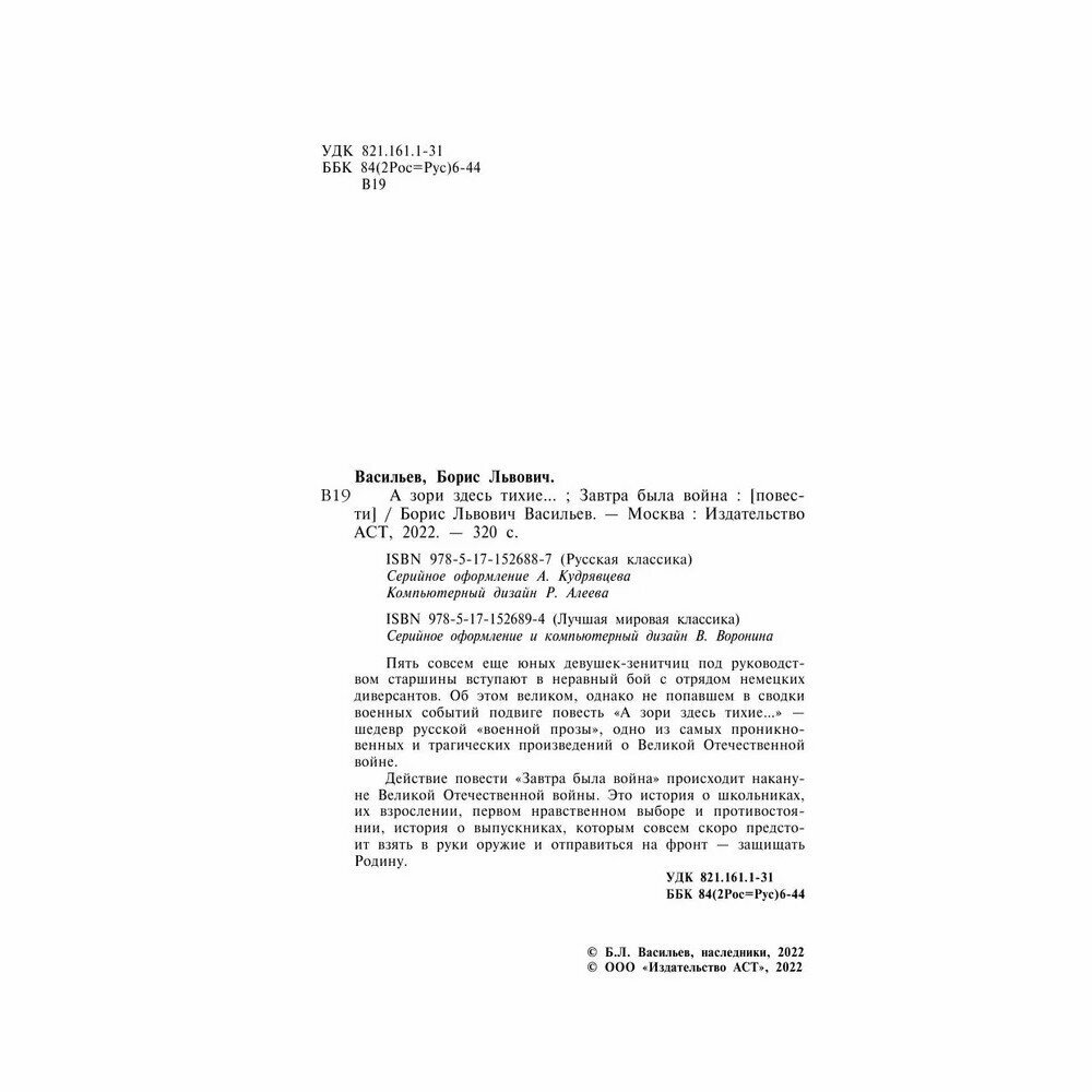 А зори здесь тихие... Завтра была война (Васильев Борис Львович); ИЗДАТЕЛЬСТВО "АСТ", 2022