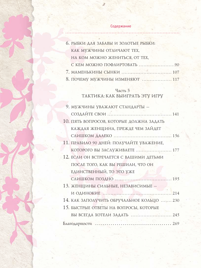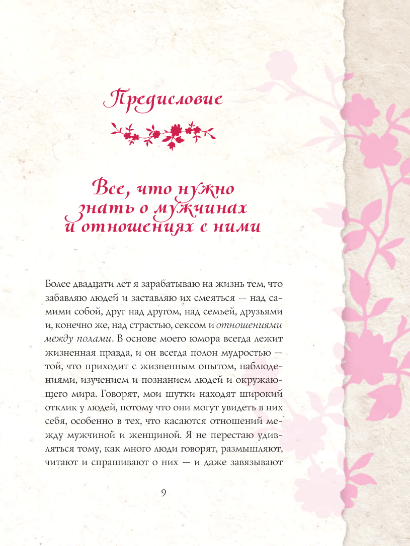 В этой книге Стив Харви дает прекрасную возможность понять ход мыслей представителей сильного пола, отвечая на множество наболевших вопросов. Например, таких: "Что вы должны, а что не можете требовать от своего мужчины?", "Как распознать маменькиного сыночка, и что делать в этом случае?", "Когда знакомить кавалера со своими детьми?", "Какие пять вопросов нужно задать мужчине, чтобы определить серьезность его намерений?"