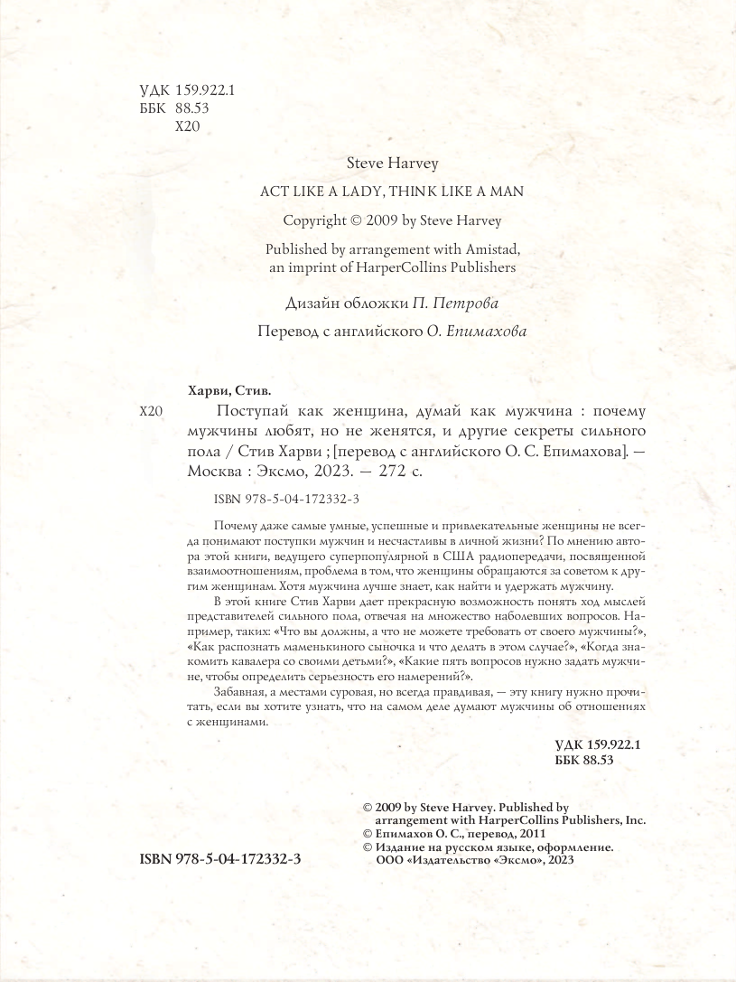 Поступай как женщина думай как мужчина. Почему мужчины любят но не женятся и другие секреты сильного пола (подарочное издание) (Харви Стив); ООО "Издательство "Эксмо", 2023