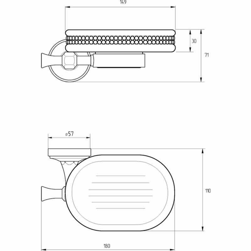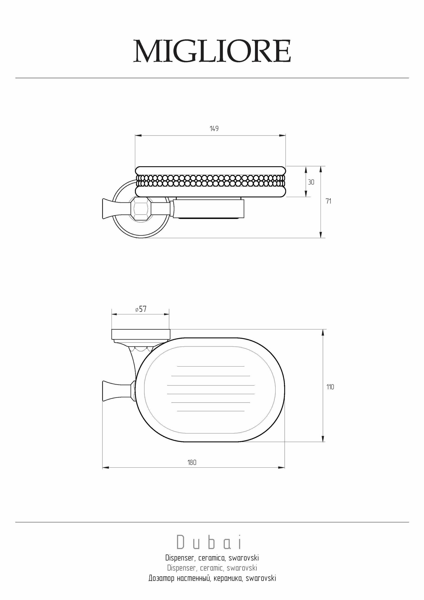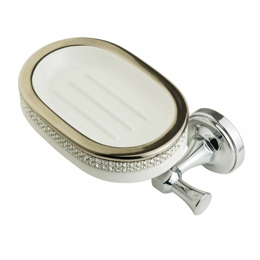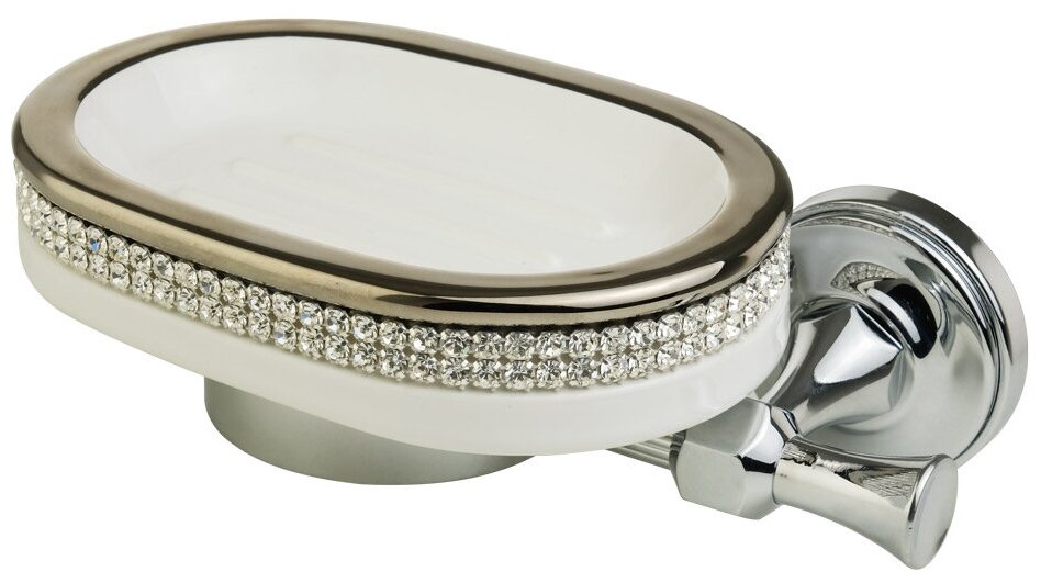 Мыльница Migliore Dubai 31248 - это стильный и функциональный аксессуар для ванной комнаты. Изготовлена из высококачественных материалов: латуни, керамики и стекла, что обеспечивает прочность и долговечность изделия.Дизайн мыльницы выполнен в белом цвете с хромированными элементами, что придает ей современный и элегантный вид. Глянцевая поверхность с кристаллами Swarovski добавляет изысканности и блеска.Мыльница имеет овальную форму и диаметр розетки 57 мм, что позволяет разместить в ней достаточное количество мыла или ватных дисков. Габариты изделия составляют 180 x 71 x 110 мм, что делает его компактным и удобным для использования.Крепление осуществляется с помощью шурупов, а монтаж производится подвесной. В комплекте поставки вы найдете мыльницу, держатель и комплект креплений.Migliore Dubai 31248 - это не просто мыльница, это стильный элемент декора, который станет украшением вашей ванной комнаты и подчеркнет ваш изысканный вкус.
