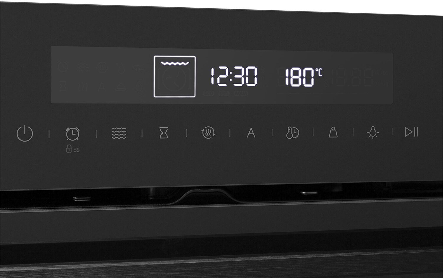 Дисплей на передней панели делает использование этого шкафа максимально простым. Вы всегда будете знать текущую температуру духовки или время до окончания приготовления.