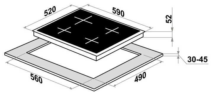 | Размеры конфорок | 165 мм 165 мм, 200 мм, 200 мм |