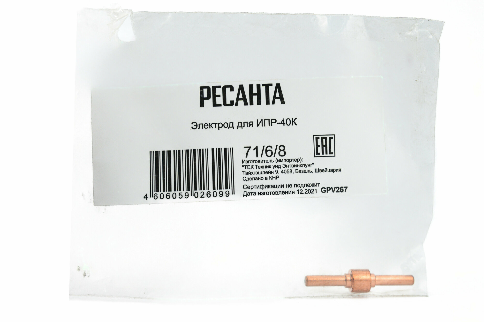 Электрод является сменным элементом для плазменных горелок. Предназначен для ионизации газа и формирования плазменной струи под действием электромагнитных сил. Электрод изготавливается из материала с высокой теплопроводностью, что обеспечивает хороший уровень охлаждения.