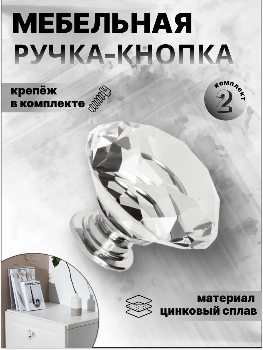 Ручка-кнопка IN.01.2020.0. PG кристалл золото - это оригинальная фурнитура для мебели, которая станет стильным и функциональным дополнением к вашему интерьеру.Оригинальный дизайн ручки в виде кристалла в золотой оправе легко впишется в любой интерьер - от классики до современного дизайна. Ручка удобна в использовании, удобно ложится в руку и станет прекрасным выбором для мебели в гостиной или спальне.Ручка-кнопка изготовлена из прочного материала - акрила и сплава ЦАМ, что обеспечивает долговечность и надежность в использовании. Матовая поверхность ручки придает ей элегантный вид.В комплекте с ручкой идут два винта М4 (24 мм), что обеспечивает простоту и удобство установки.Ручка-кнопка IN.01.2020.0. PG кристалл золото имеет следующие характеристики:- Диаметр: 4.0 см- Количество: 1.0 шт- Максимальная нагрузка: 10 кг- Усилие: 100 Н- Цвет товара: золотистый- Тип: ручка мебельная- Вид ручки: ручка-кнопка- Материал: ЦАМ (сплав цинка, алюминия и меди)- Поверхность: матоваяЕсли товар вам не подошел или не понравился, вы можете вернуть его в течение 7 календарных дней со дня получения.